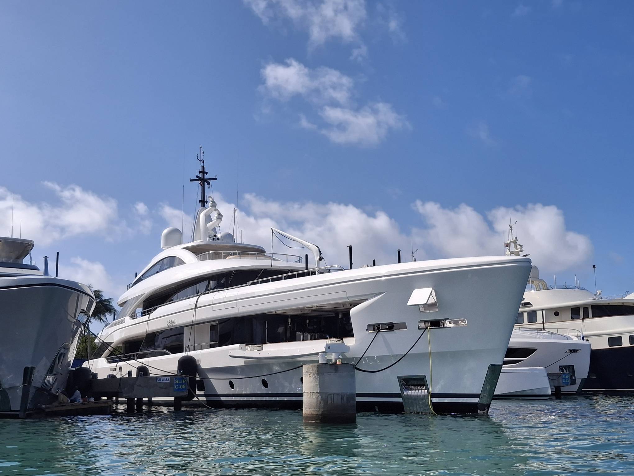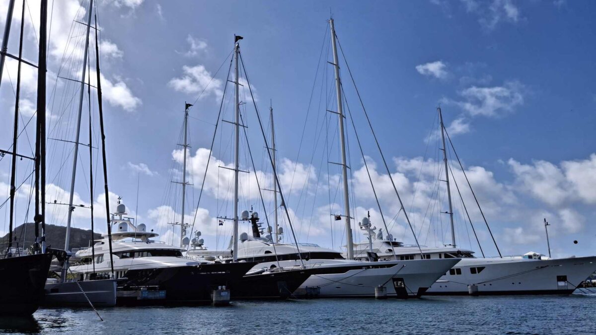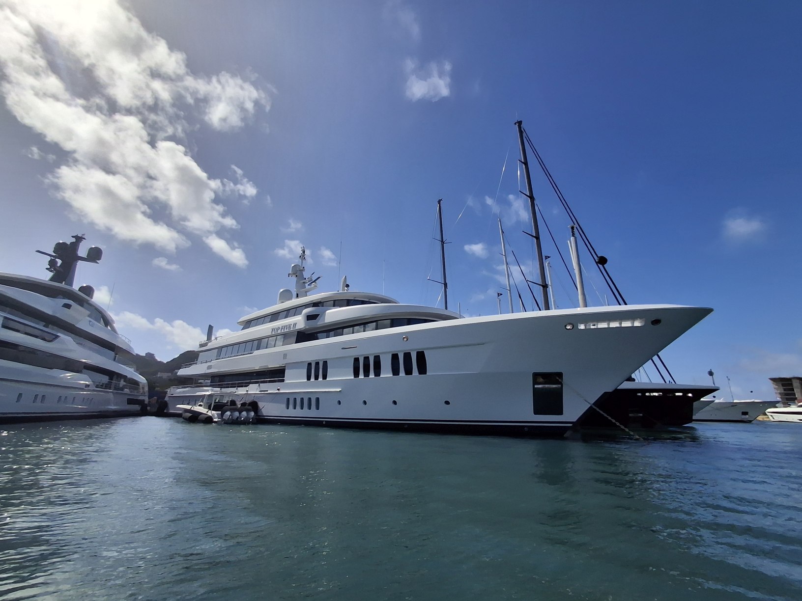 Im Kontrast zu den gedrängten und gefühlt noch immer zerfallenden Verhältnissen auf den Strassen des Städtchens Marigot stehen die unzähligen, riesigen Superjachten in der Lagune. Es wirkt irgendwie schon ziemlich befremdlich, so viel unglaublichen Luxus auf so wenig Raum angehäuft zu sehen. Manchmal wird man sich der riesigen Masse erst bewusst, wenn es einen Grössenvergleich mit einem Crewmitglied irgendwo auf den Ungetümen gibt… Unsere sea magiX ist oft gerade mal so gross, wie das Beiboot dieser Dampfer. Was wohl ein Tag Liegeplatz für so einen hier kostet? Wir könnten es nachlesen, aber lassen das lieber deren Problem sein.