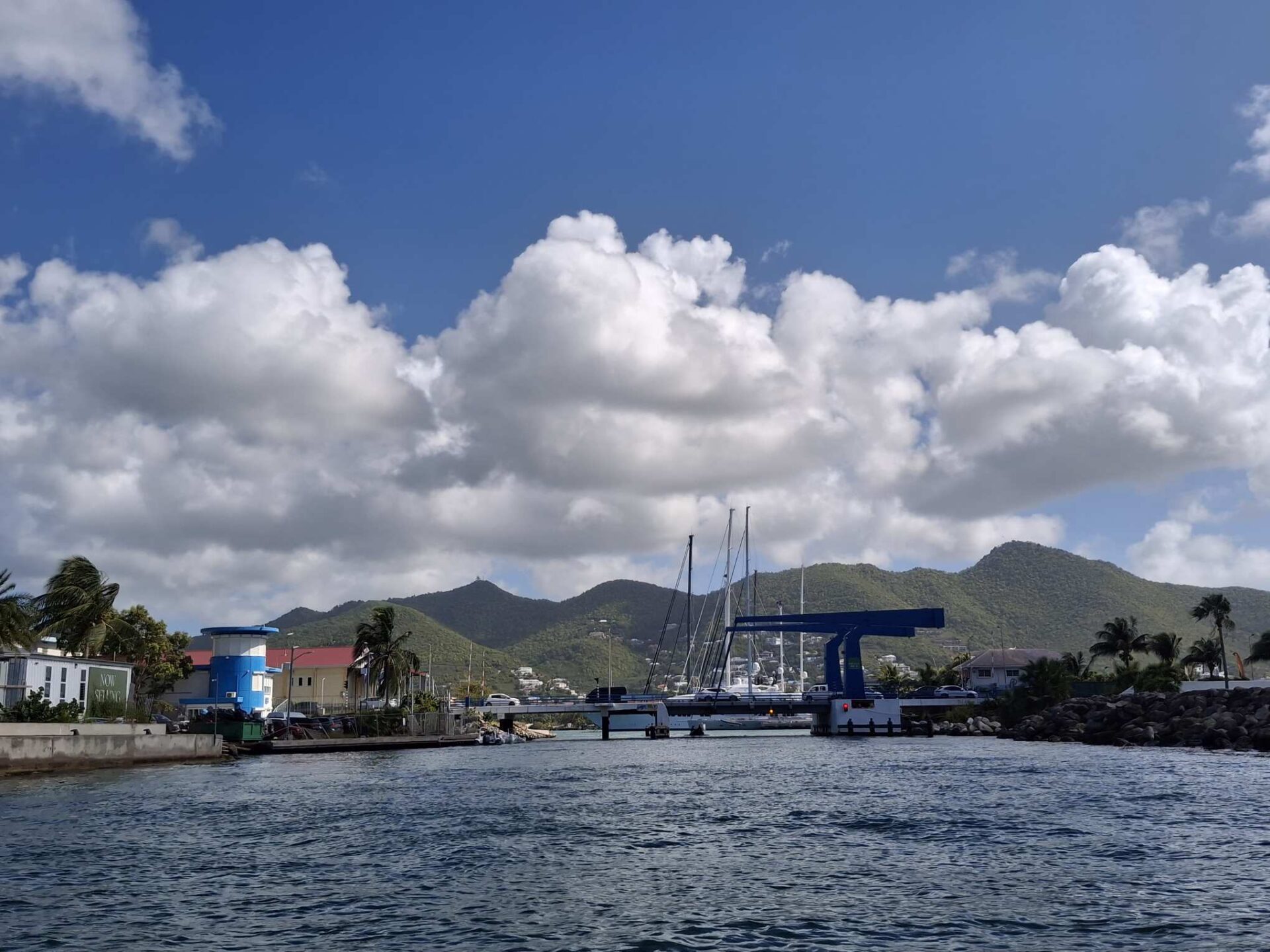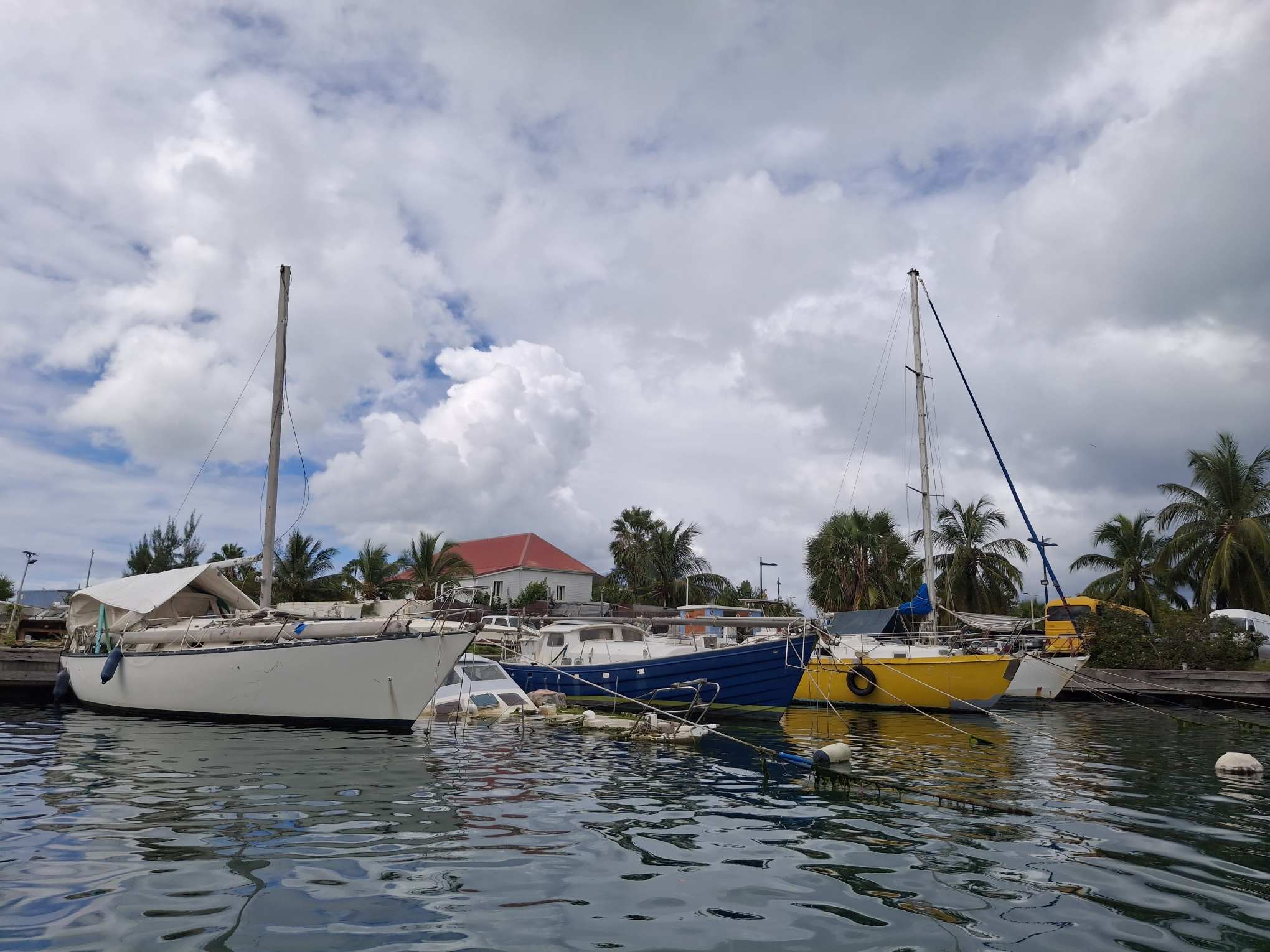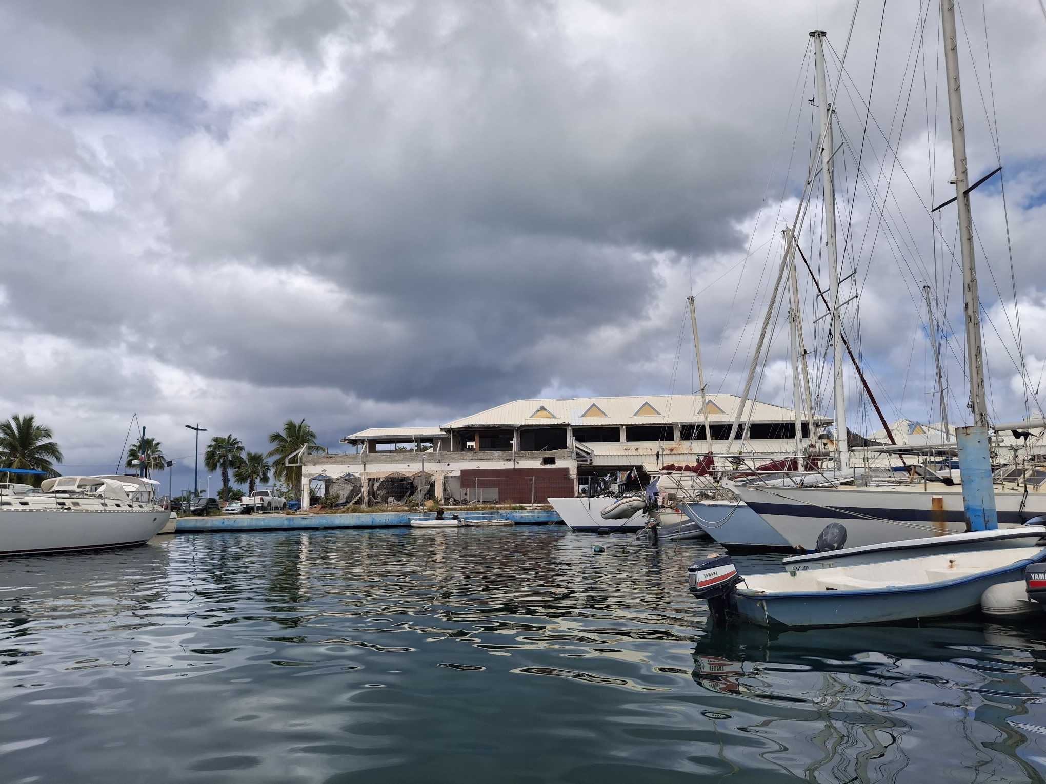 Die frühere Marina auf der französischen Seite zerfällt weiterhin. Sie wurde – wie fast alles andere auch auf der Insel – beim Hurricane Irma 2017 zerstört. Und seither nicht wieder aufgebaut. Es findet sich wohl keiner, der hier Geld investieren möchte. Und je länger, desto weniger wahrscheinlich ist es, dass sich da was ändern wird. Es ist ein trauriges Bild von halb versunkenen Wracks, noch immer bewohnten Ruinen und einigen “Günstig-Langzeitliegern” im früheren Marinabecken. An Land versuchen einige Restaurants und Geschäfte, sich irgendwie wieder zu etablieren, aber auch das ist schwierig wenn nebenan die Ruine das Bild bestimmt. Schade… auch wenn es fürs Anbinden des Dinghys praktisch ist, dass dort immer Platz ist dafür.