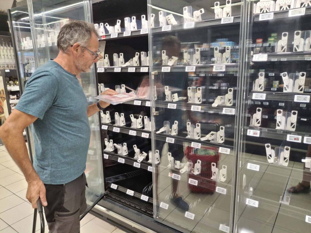 Auf der anderen Seite beim Super-U zeigen sich Auswirkungen der grossen Winterstürme im Atlantik: mindestens ein Frachtschiff mit Milchprodukten konnte die Insel nicht wie geplant beliefern. Eindrücklich, die leergefegten Kühlregale!
