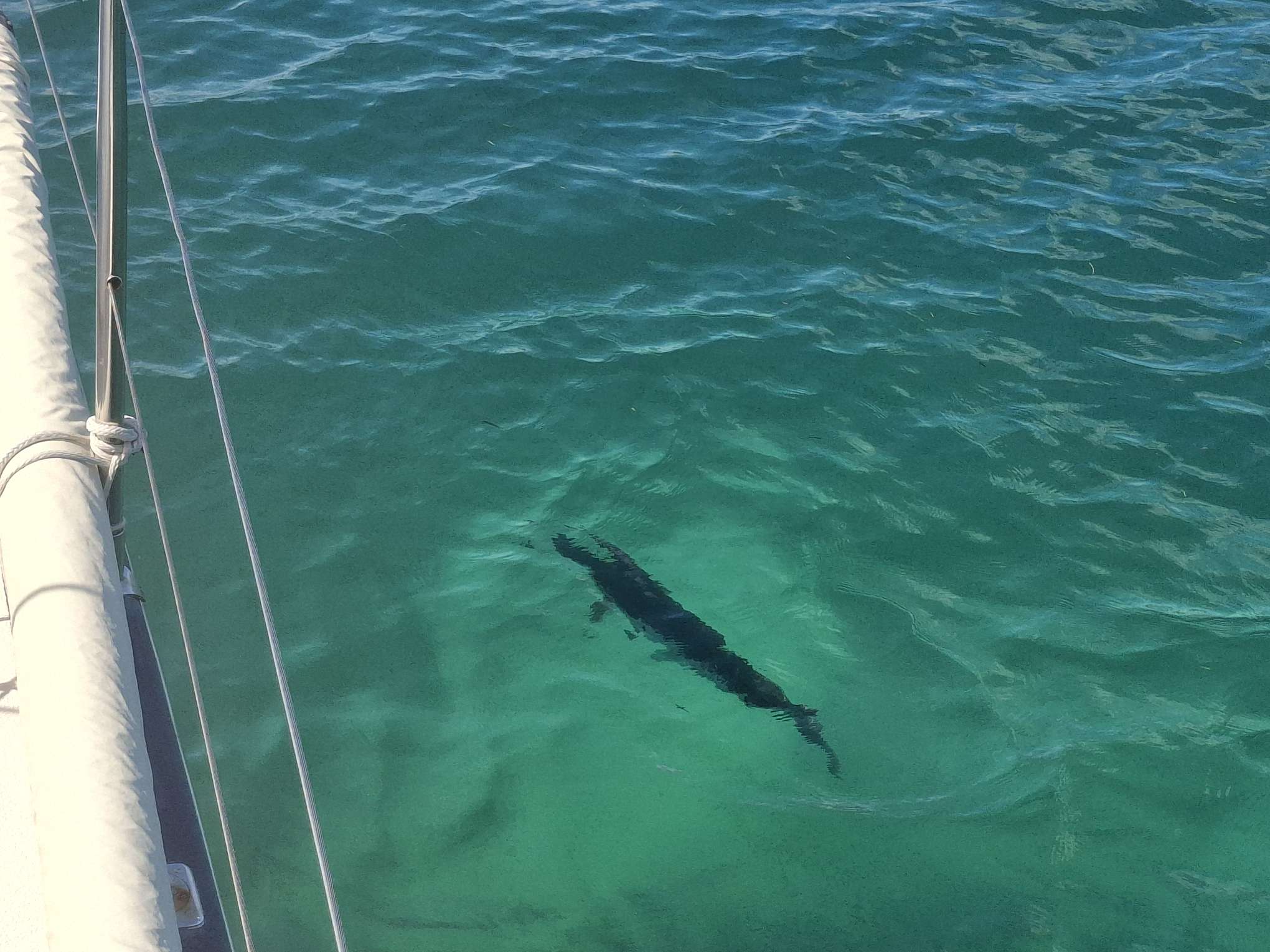 Aber dafür rollen wir hier fast nicht mehr hin und her und auch die Windwelle ist minimal. Da nehme ich problemlos einiges an Fluglärm auf mich und schlafe wohl trotzdem besser, als wenn es uns von einer Fussreling zur anderen hin und her rollt, oder die ganze Zeit auflandig am Anker zerrt und ich mir in der Koje ausmale, wie es bald plötzlich unter dem Kiel rumpeln könnte, wenn der Anker doch rutschen sollte.