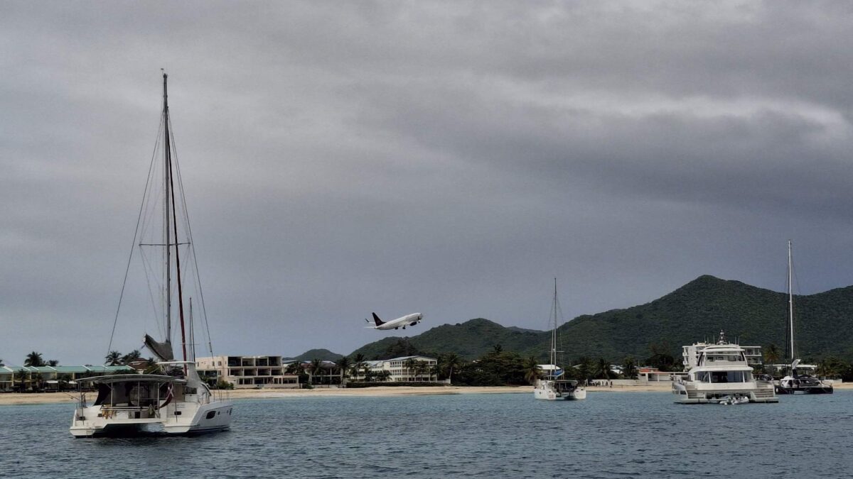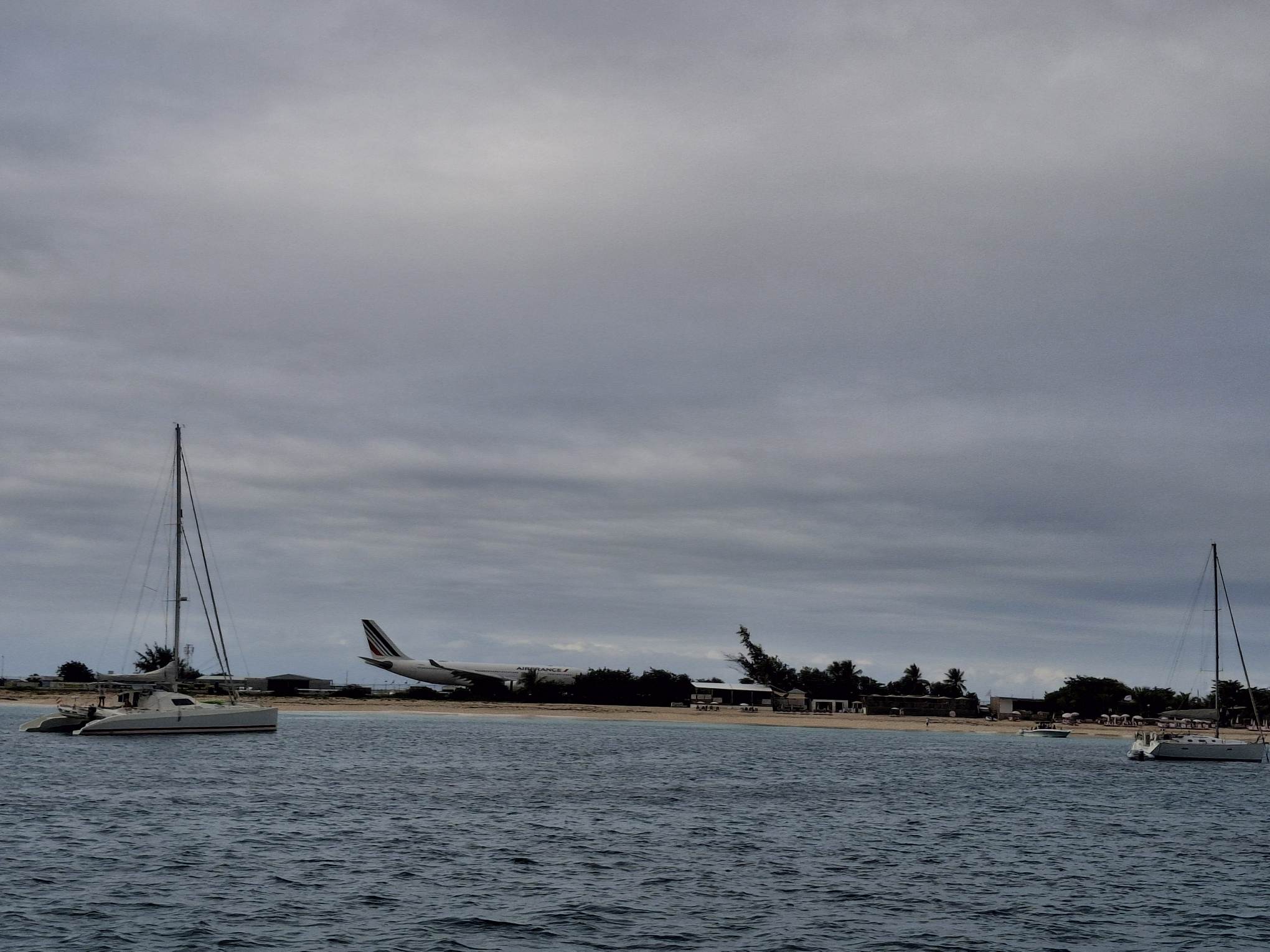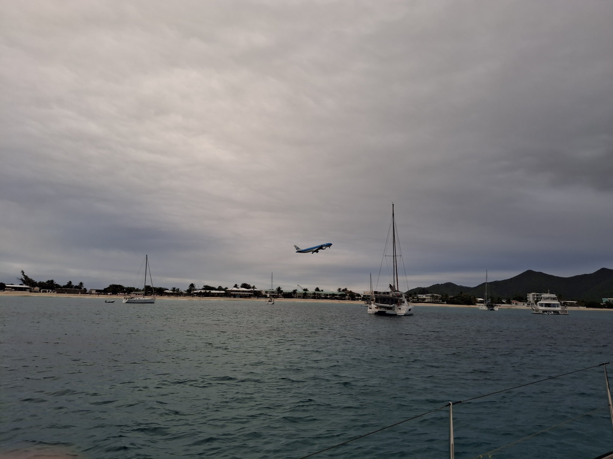 Jetzt ist Sonntag, der 8.2. und wir haben tatsächlich „um die Ecke“ in die Simpson Bay verlegt. Wir liegen jetzt gemeinsam mit vielen anderen wenige hundert Meter von der Start- und Landebahn des Princess Juliana Airports entfernt vor Anker. Alle 2-3 Minuten startet oder landet gerade ein Flieger. Viele davon sind private Jets. Die Besitzer der unzähligen Superjachten kommen und gehen hier wohl so mit ihren Jets, wie wenn wir mit dem Fahrrad nochmals ins Einkaufszentrum fahren, weil wir etwas vergessen haben… Gleich nebenan ist der berühmte Maho Beach, wo die Jumbos wenige Meter über den Köpfen der Badegäste am Strand landen. Ein beliebtes Schauspiel für Flugzeugfans. Für uns noch etwas eindrücklicher sind die Starts der grossen Flieger: die müssen nämlich in sehr kurzer Zeit richtig hoch hinauf zielen, um über die Hügel von St. Martin zu kommen. Ich kann mir gut vorstellen, wie die Piloten untereinander Horrorstories über die Starts auf Sint Maarten austauschen… das ist wohl so wie bei den Seglern, wo bei jedem mal Erzählen die Wellen höher und der Wind stärker werden. 😉