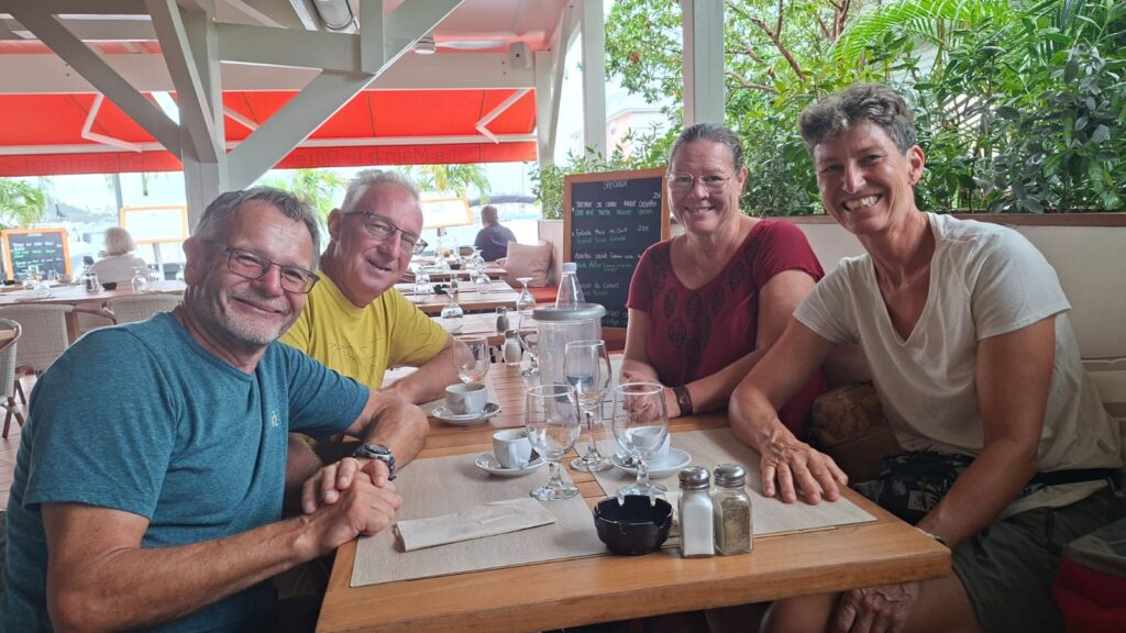 Oder auch die Essen im „Lagoonis“, gleich neben dem Shipchandler „Island Water World“ auf der holländischen Seite. Die Preise dieser beiden Lokale sind für hiesige Verhältnisse ok, und im Vergleich zu anderen Restaurants hier sogar günstiger. Aber sie machen auch sehr deutlich, dass wir uns ab jetzt im Hochpreis-Gebiet der Karibik bewegen. Für Milchprodukte wie Jogurt oder Käse werden hier auch in den grossen Einkaufszentren teils Fantasiepreise verlangt. Ein 1kg-Becher Nature Jogurt kostet zwischen USD 8.56 und über 10 USD. Der grosse Carrefour nahe der holländischen Seite mit eigenem Dinghysteg (auf Google Maps ist er mit „Carrefour Dinghy Dock“ markiert) ist anscheinend der Hauptversorger für viele Superjachten. Er hat ein sehr grosses, vielseitiges Sortiment, aber auch die entsprechenden Preise. Wir staunen immer wieder, können dann aber bei gewissen Angeboten doch nicht immer widerstehen.