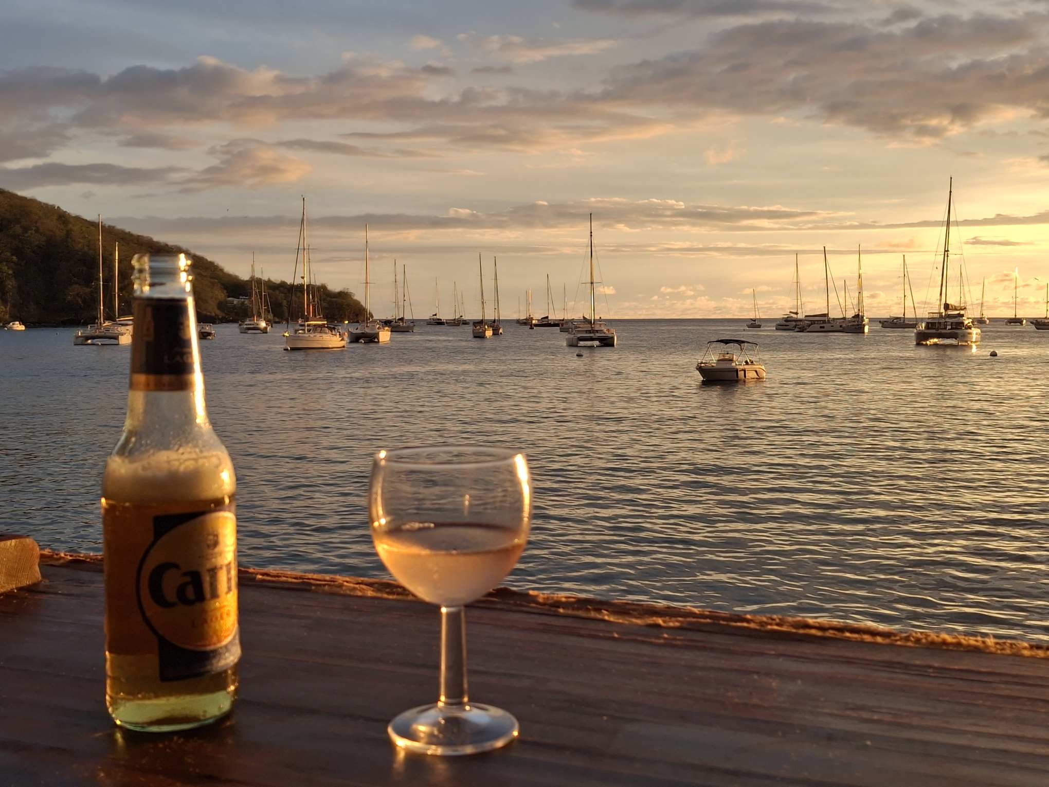 Den Sundowner genossen wir dann wieder mit romantischem Blick auf die Ile du Pigeon.