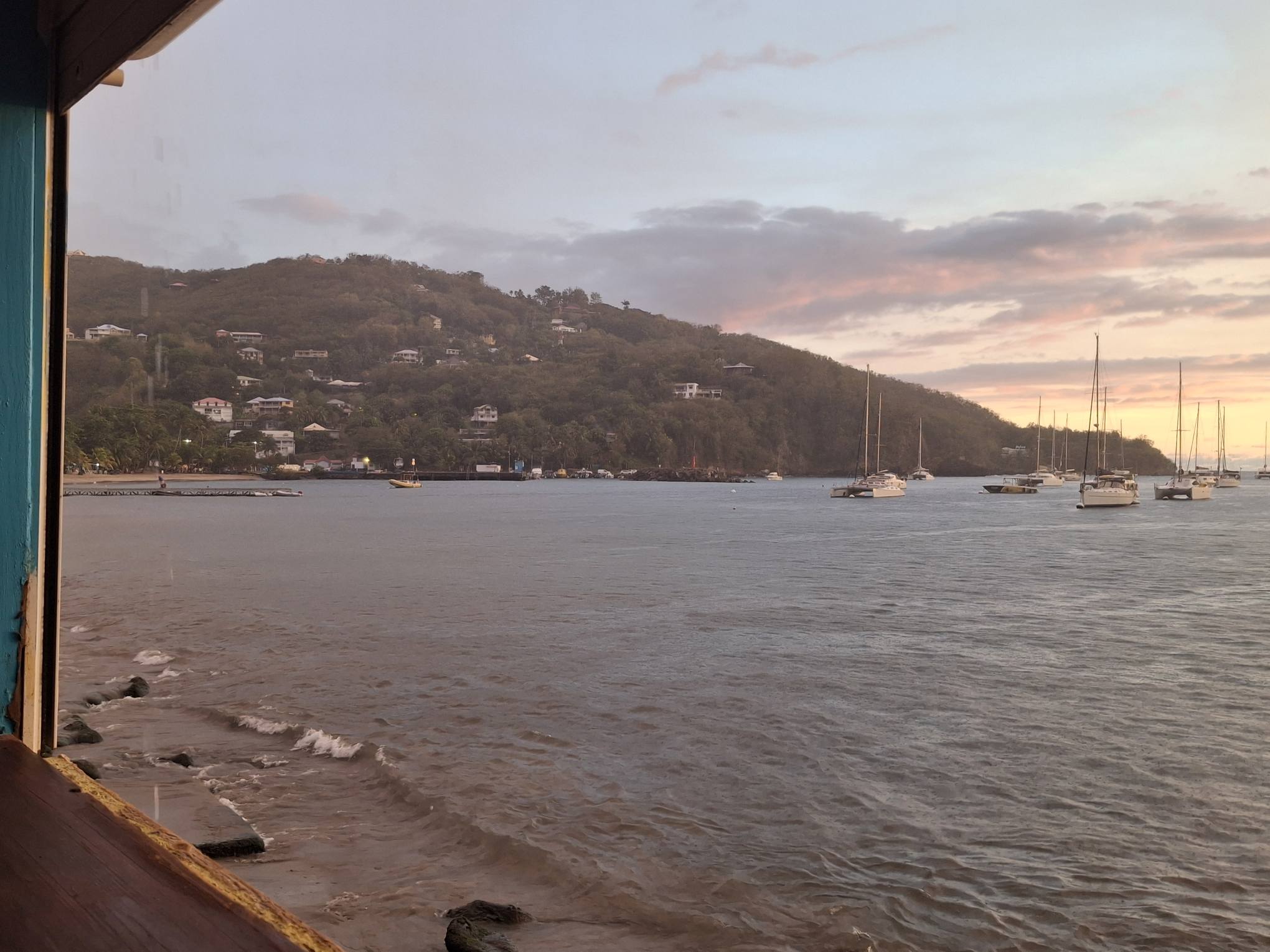 Den Nachmittag verbrachten wir dann an Land in Malendure, mit Einkaufen im nahe gelegenen Leader Price und einer Wäsche. Nur die Ein- und Ausfahrt in den winzigen Fischerboothafen ist etwas abenteuerlich bei dem Schwell, den der Südostwind weiter unten an der Insel zu uns plötzlich hinauf schickte. Aber wir kamen mit noch immer trockener und fein duftender frischer Wäsche wieder an Bord an und konnten dann einen weiteren schönen Sonnenuntergang geniessen, obwohl der Wetterbericht eigentlich schon für den Abend Regen vorher gesagt hatte.
