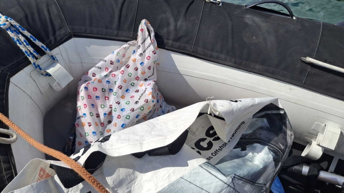 Der kam dann erst am Sonntagvormittag. Wie ebenfalls vorausgesagt ohne nennenswerten Wind. Wir hielten deshalb am geplanten „on-board-day“ fest, genossen ein feines spätes Frühstück mit gebratenen Spaghetti und liessen den Regen gemütlich aufs Deck plätschern.