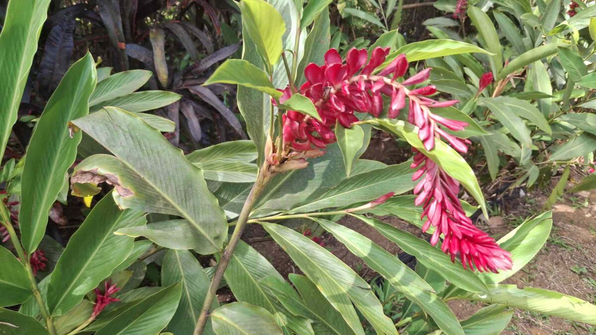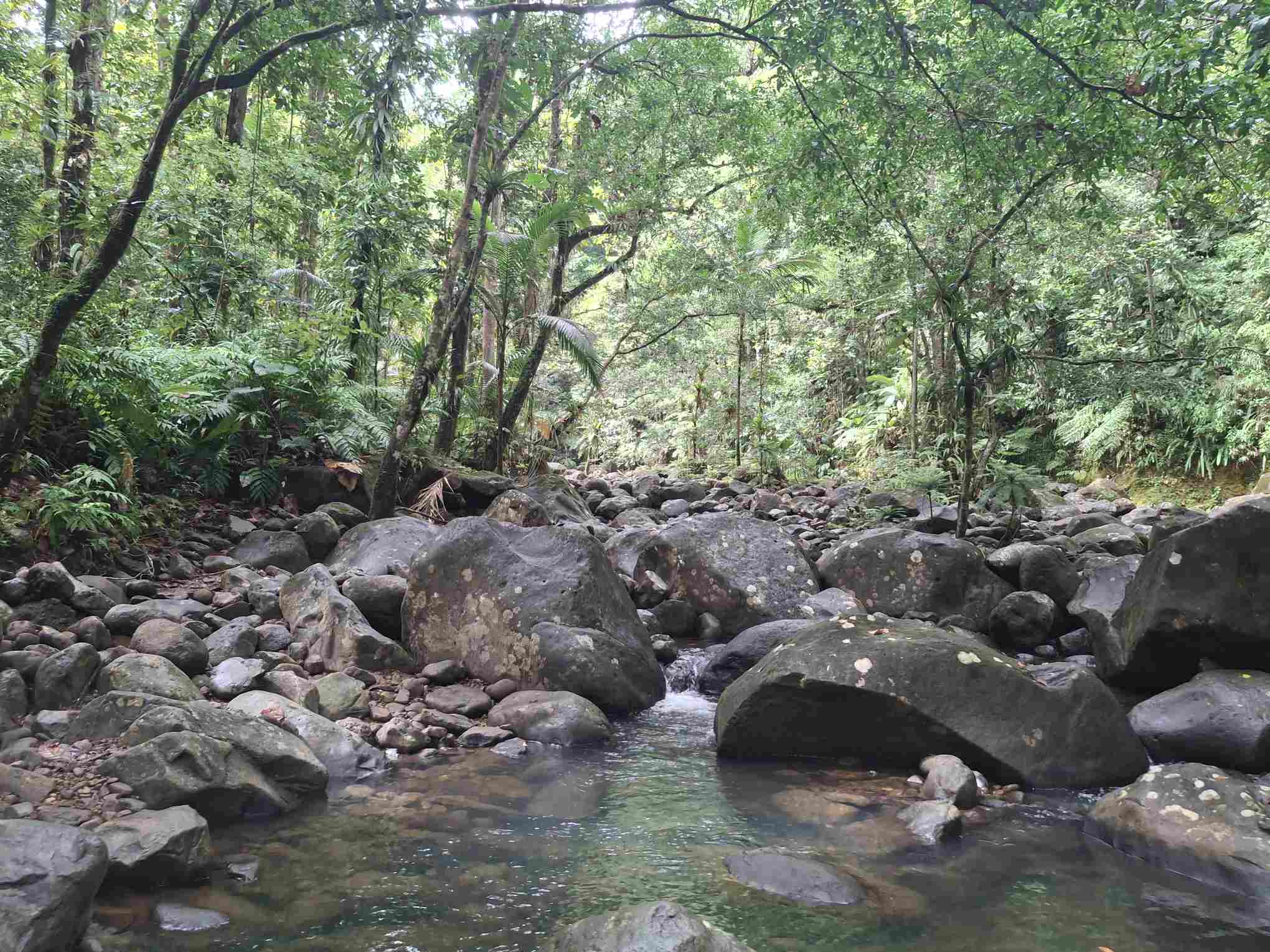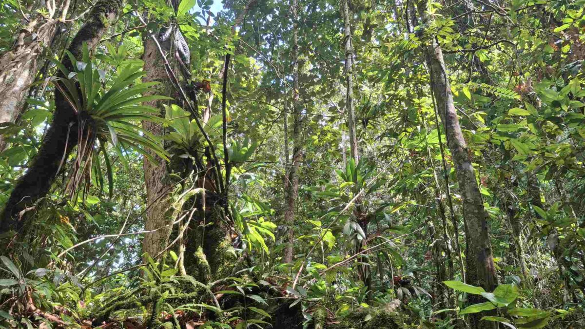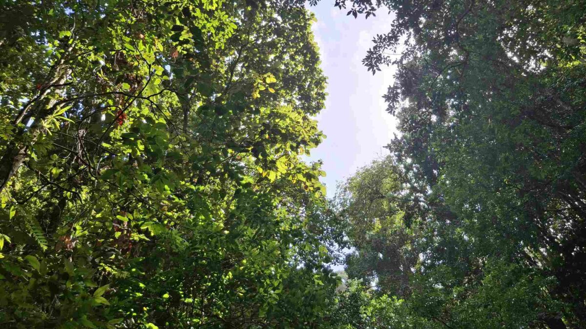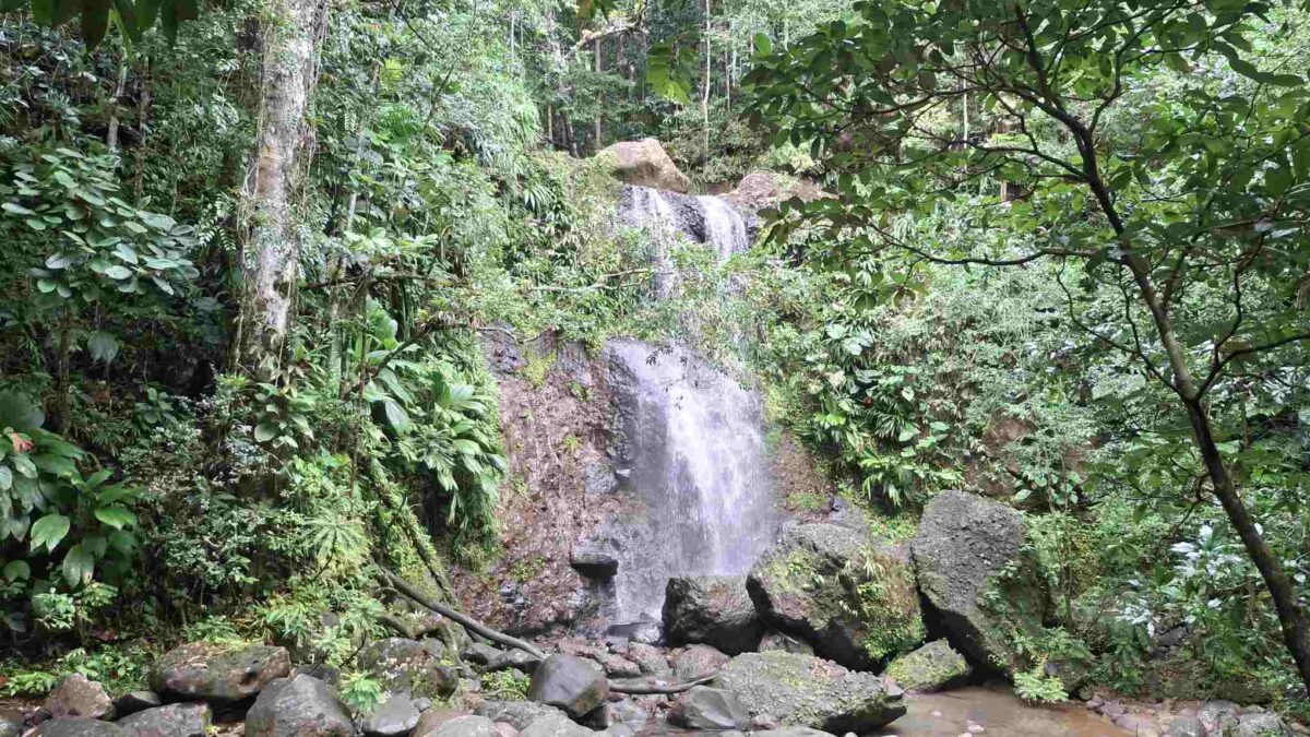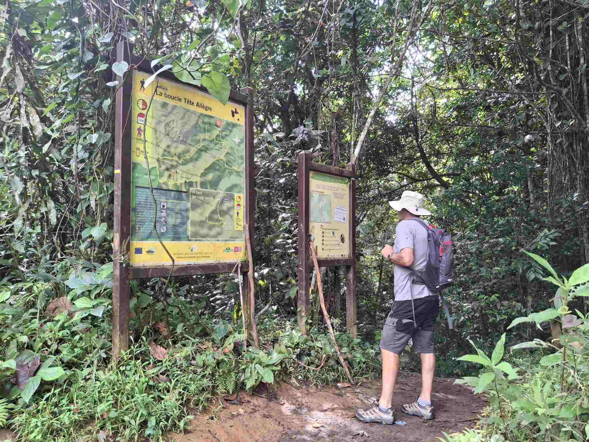 Eigentlich kein besonders schwieriger Wanderweg, aber nach den häufigen Regenfällen der letzten Tage eben doch eine grössere Herausforderung als erwartet: der Weg führte wie erhofft durch den faszinierend grün schillernden Feuchtwald mit seiner unendlichen Vielfalt an Flora (und wohl auch Fauna, nur sehen wir die als Laien kaum). Grüntöne in allen Schattierungen. Pflanzenblätter in allen Formen und Grössen (vor allem 4XL), riesige Bäume, Schlingpflanzen, Farne und dazwischen immer wieder auch kleinste Blümchen oder sonstige Pflanzentriebe. Und am Boden den ganzen Weg lang die verzweigten, rutschigen Wurzeln, in deren Löchern tiefer Matsch nur so darauf wartete, einen unserer Wanderschuhe zu verschlucken.