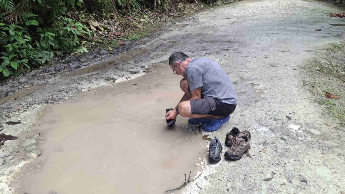 Die schwefeligen Duschen von Sofaïa zogen uns nicht so an, obwohl sie gleich dort am Parkplatz öffentlich zugänglich waren. Es roch halt schon sehr stark nach faulen Eiern… Stattdessen putzte der Skipper unsere Schuhe in einer Pfütze und wir fuhren zum nahen Musée du Rhum.