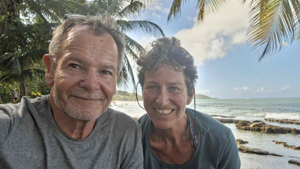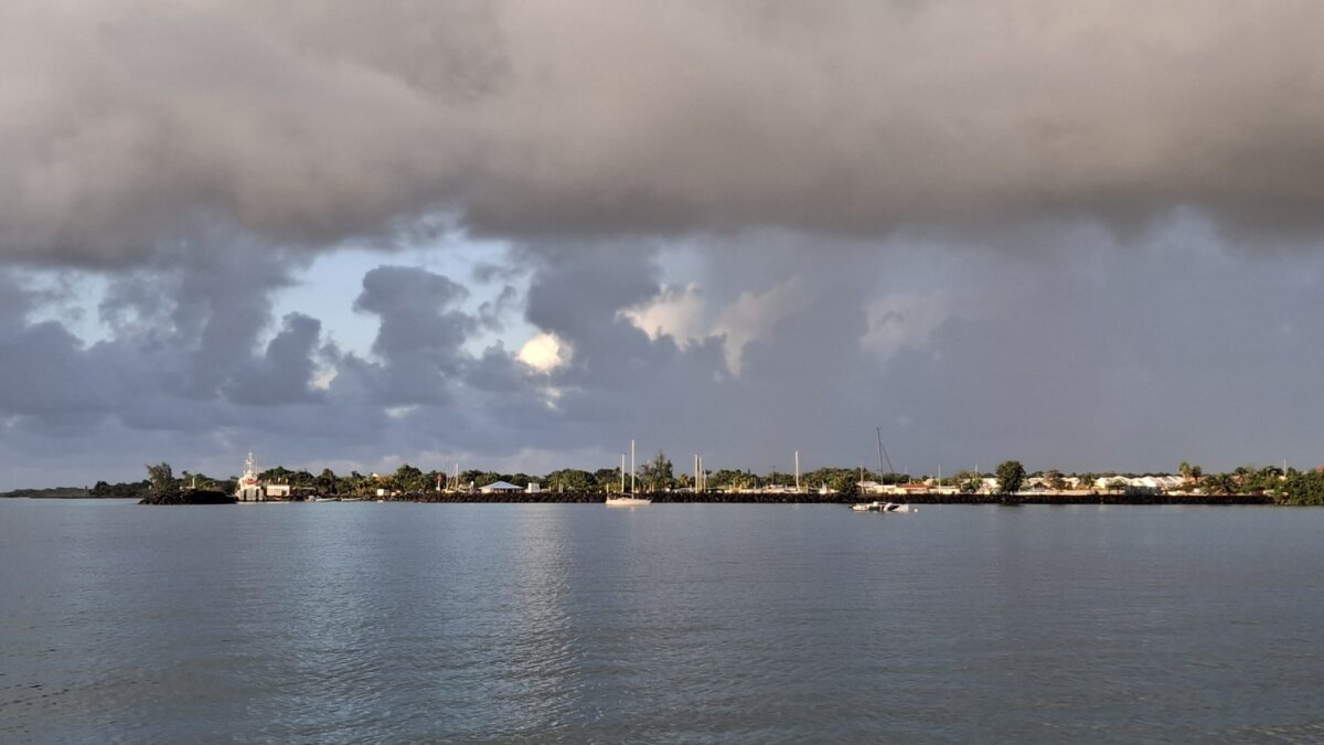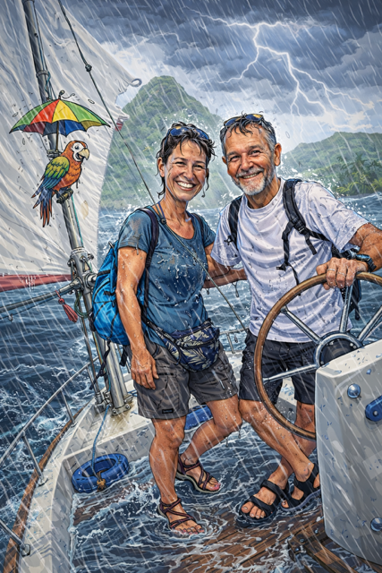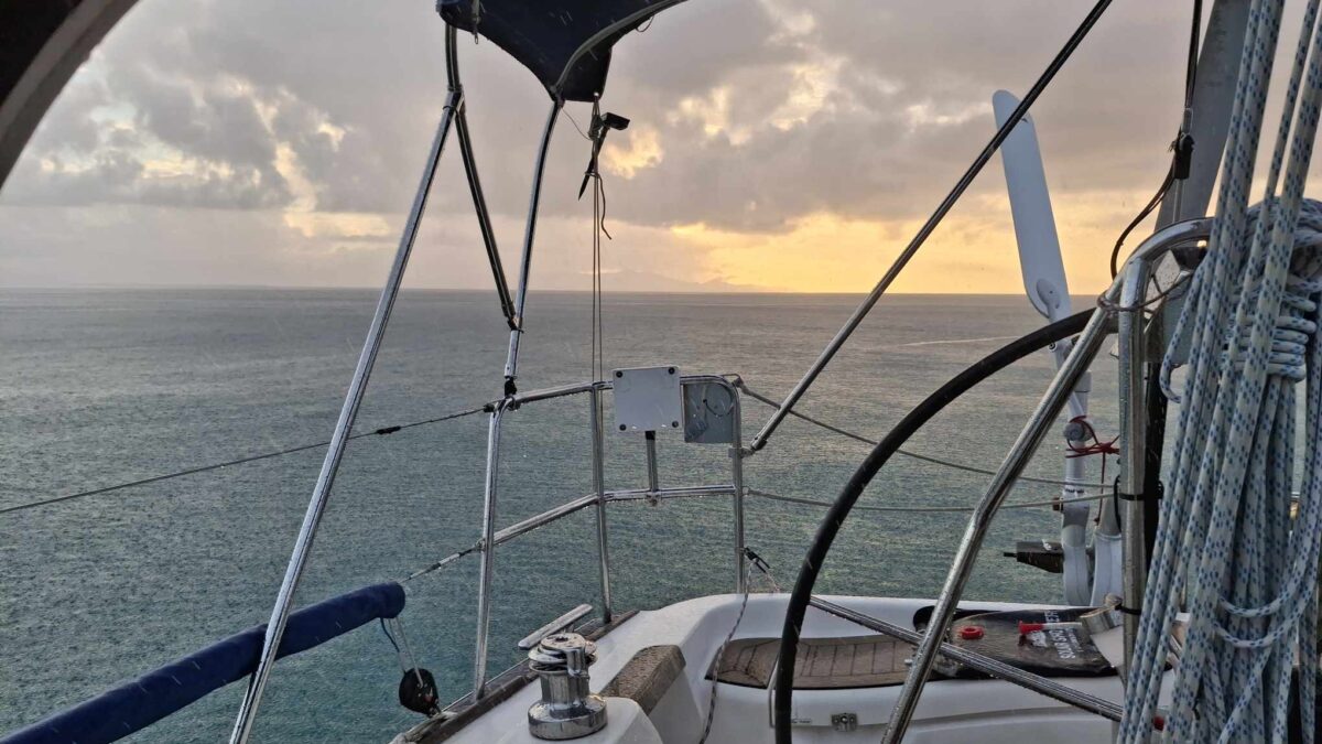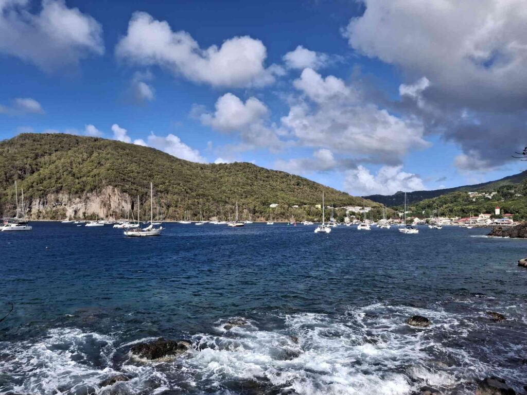 Einerseits sind wir ja schon am „hanging loose“ mit unserem lockeren Zeitplan. Heute (Do., 22.1.26) Morgen wollten wir eigentlich von Guadeloupe los legen, um nach Antigua zu segeln. Die zweitletzte Strecke nach Nordosten, bevor der Inselbogen nach Westen abbiegt. (Barbuda wäre dann die letzte.) Aber andererseits: so „loose“ hängen wir gerade eben nicht: die Ankerkette ist straff gezogen und übers Deck ziehen gerade ganze Wasserwände, gepeitscht von 30 Knoten Wind. Ungemütlich! Zwar meist nur kurz und dann ist die Sonne wieder zurück – bis jetzt. Deshalb hanging tight, eher als loose.