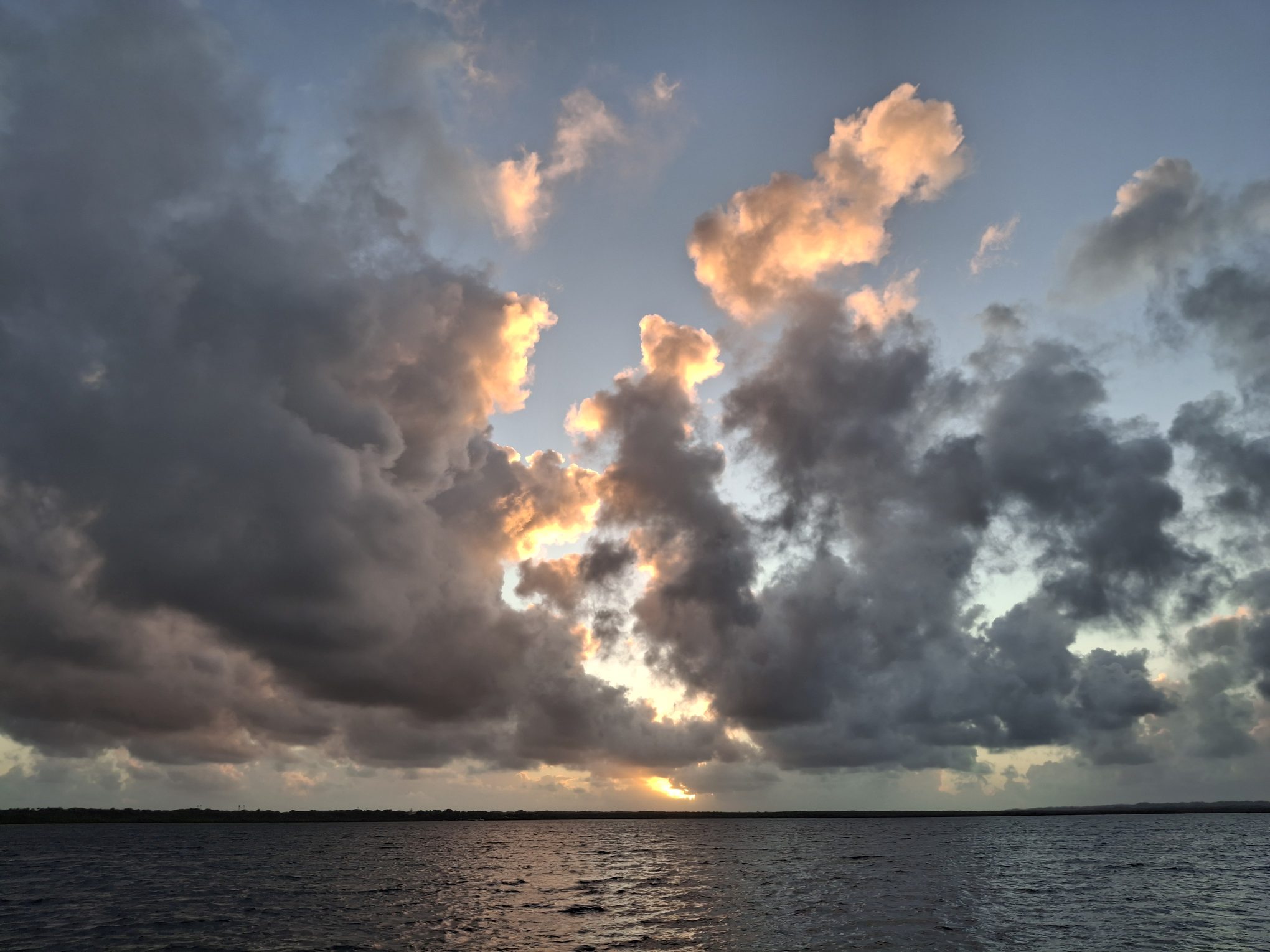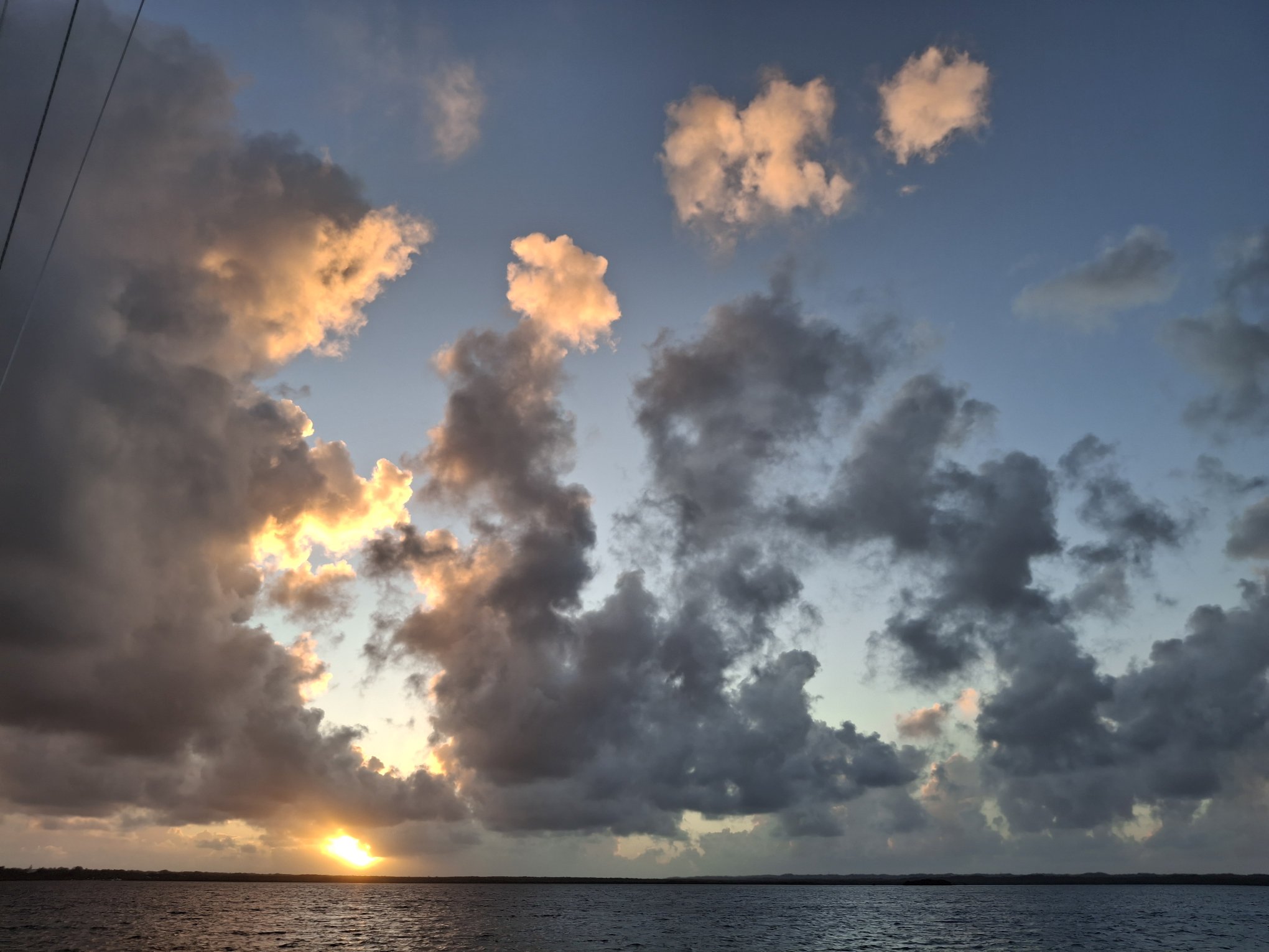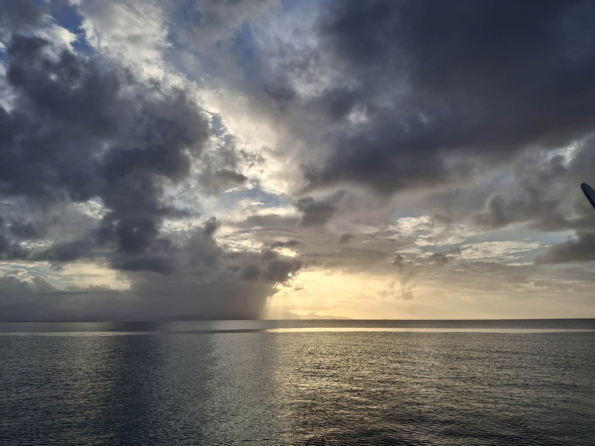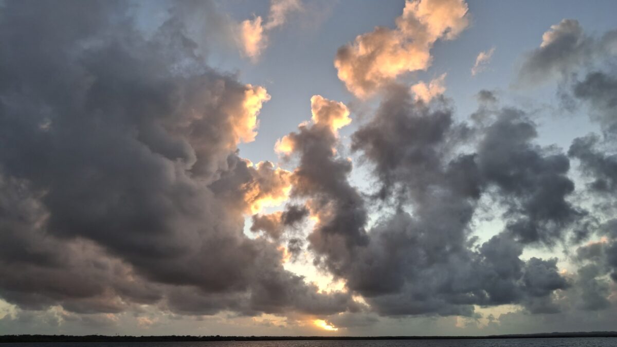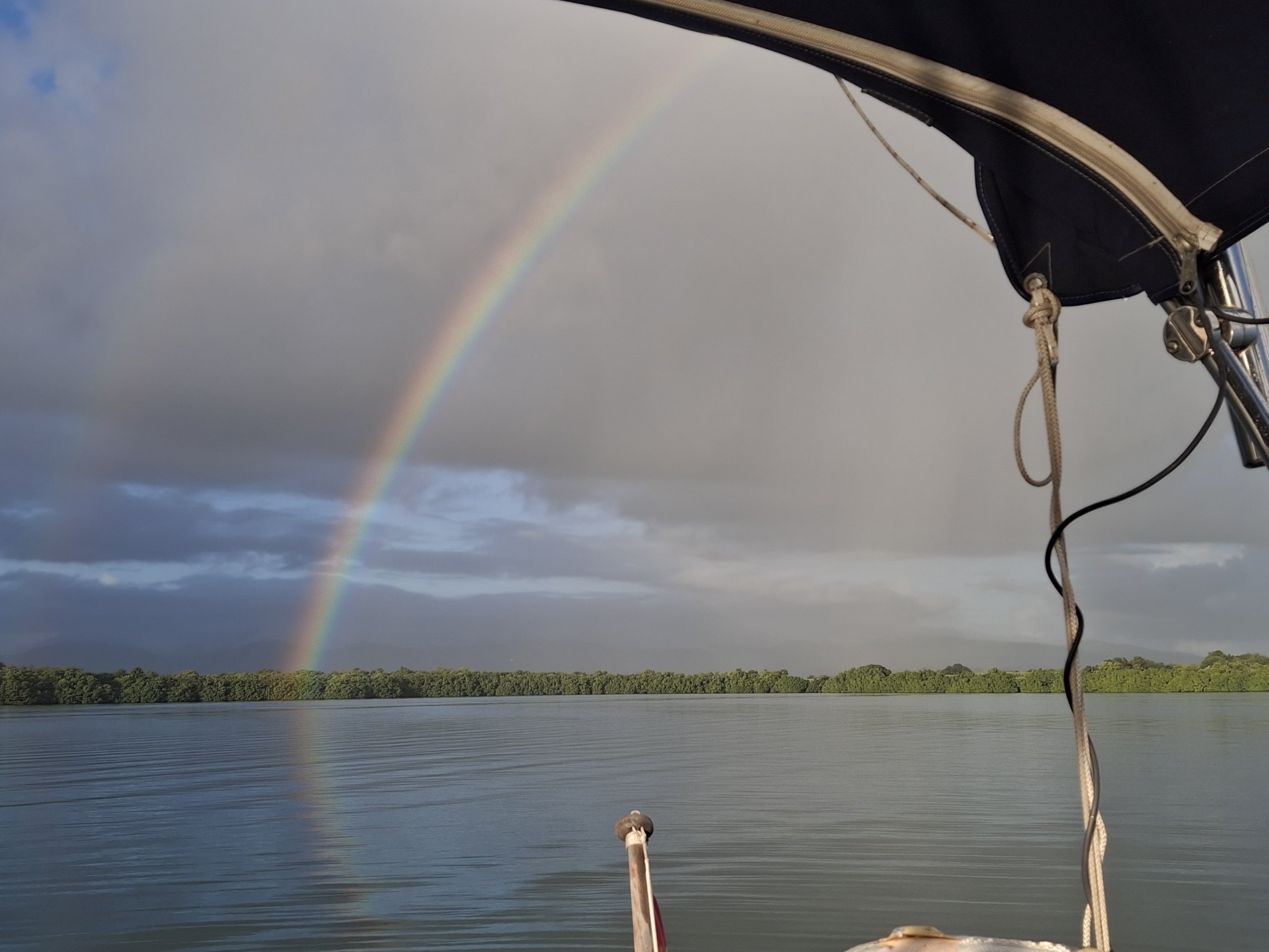 Antigua? Morgen? Übermorgen? Die Unruhe beginnt sich allmählich auszubreiten. Andererseits – es gefällt uns hier eben auch noch immer und gerade zieht wieder ein Schauer in unserem Süden durch… Und abends, wenn sich der Wind legt, zaubert es hier so wunderschöne Stimmungen.
