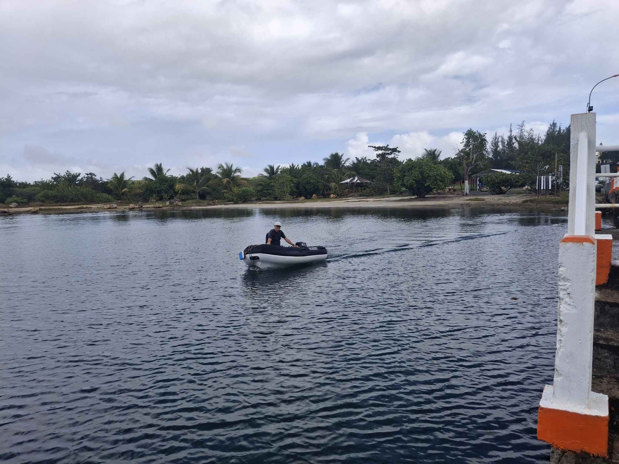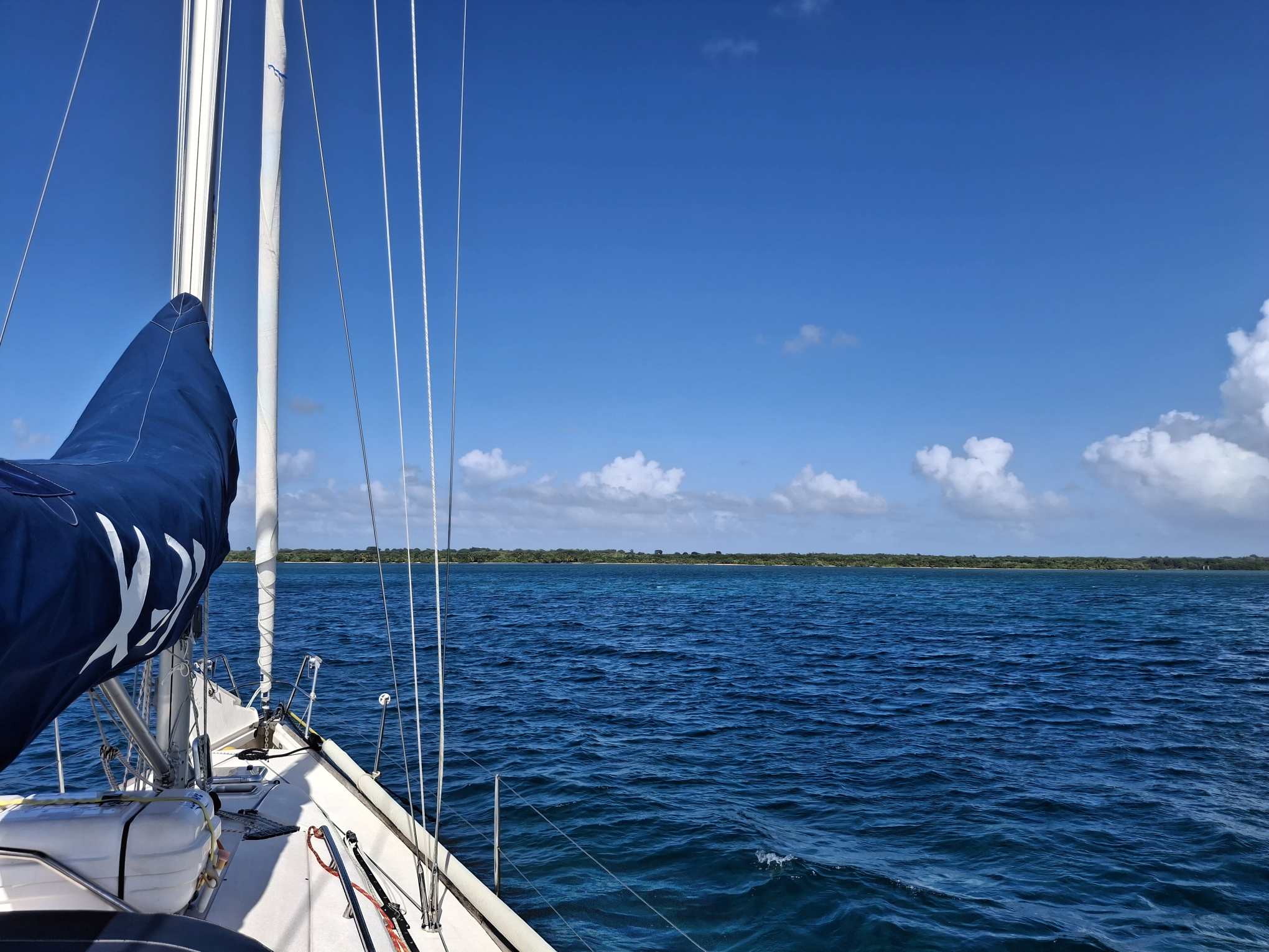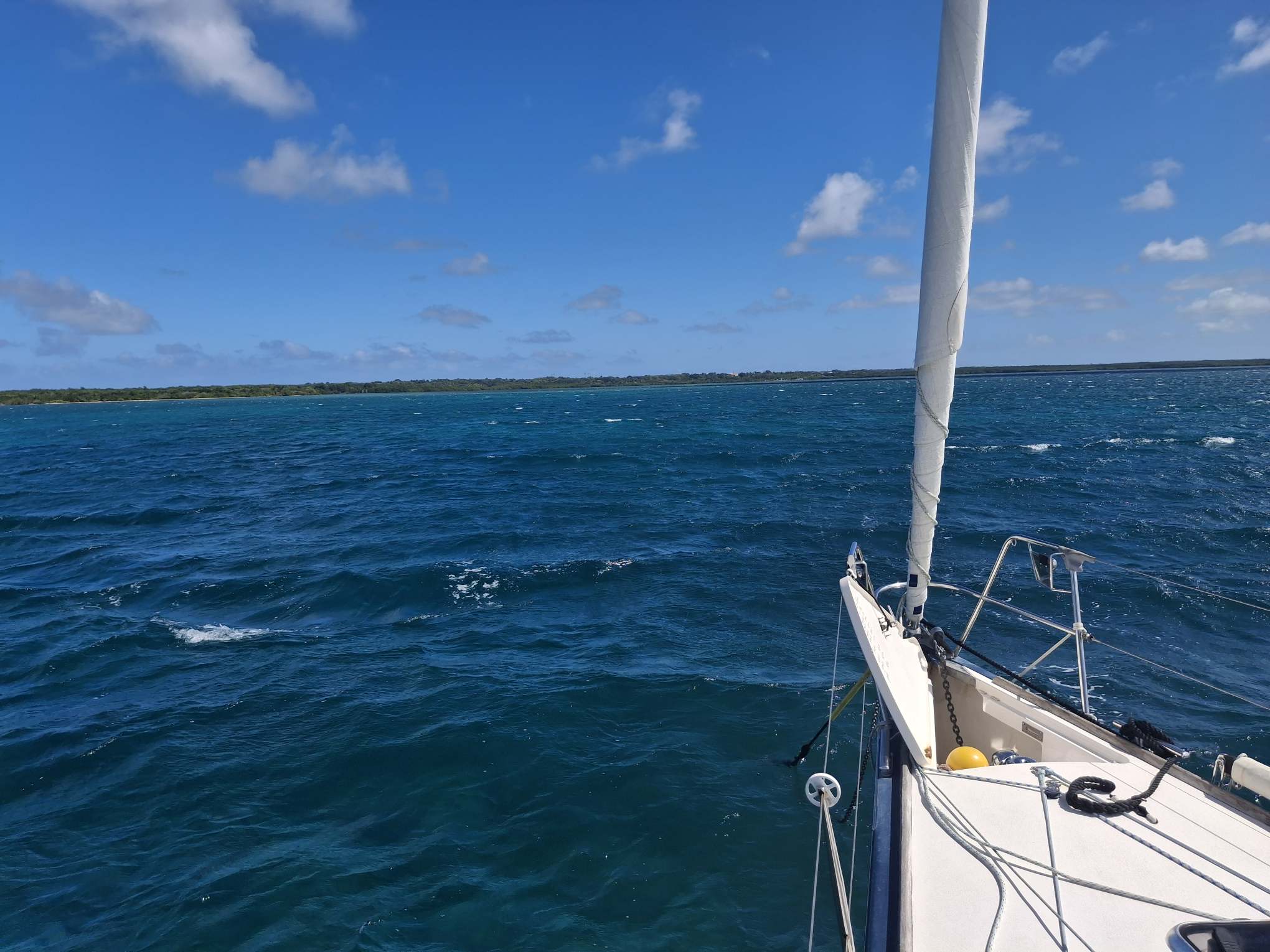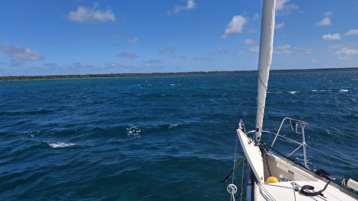 Der Dienstagmorgen war für mich für Arbeitstermine reserviert, während Bänz das Auto zur Vermietung zurück brachte und sehr unkompliziert von ihr zum Dinghysteg geführt wurde. Danach zog es uns hinaus aus unserem sicheren Schlupfloch, um den Autopiloten vielleicht unter Fahrt zum Laufen zu bringen. Wir drehten im noch ruhigen Wasser hinter den Riffs diverse Kringel, aber der Kompass liess sich nicht kalibrieren und auch der Autopilot blieb unsichtbar. Nach 2 Stunden Gegenanmotoren hatten wir unseren neuen Ankerplatz auf ca. 3m Wassertiefe erreicht: mitten in der riesigen Bucht vor dem Örtchen „Le Petit Canal“. Ein sehr ungewohntes Gefühl, denn „vor dem Örtchen“ heisst mit etwa 1.5 SM Distanz zum Ufer nach vorne und ca. ½ SM zur Seite. Näher ran trauten wir uns wegen der geringen Wassertiefe nicht, aber hier waren wir vor dem Schwell aus Norden gut geschützt und hatten unendlich viel Platz, um sea magiX an 40m Ankerkette umherschwingen zu lassen, was sie auch genüsslich und mit viel Energie so tat, während wir beide den Rest des Tages unter Deck verbrachten. Der Skipper weiterhin mit dem Autopilot-Problem und die Crew mit ihrer Buchhaltung, mit der sehr willkommenen Unterbrechung durch einen langen WhatsApp-Call mit unseren Freunden Baba und Robi von der SY Maxi. Gerade an solchen Ankertagen wird immer wieder deutlich, wie schön und wichtig uns diese Kontakte sind.