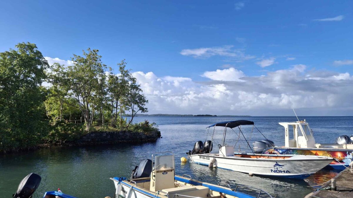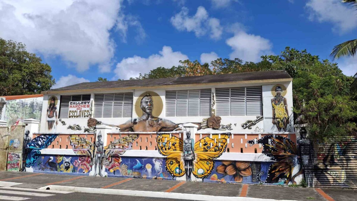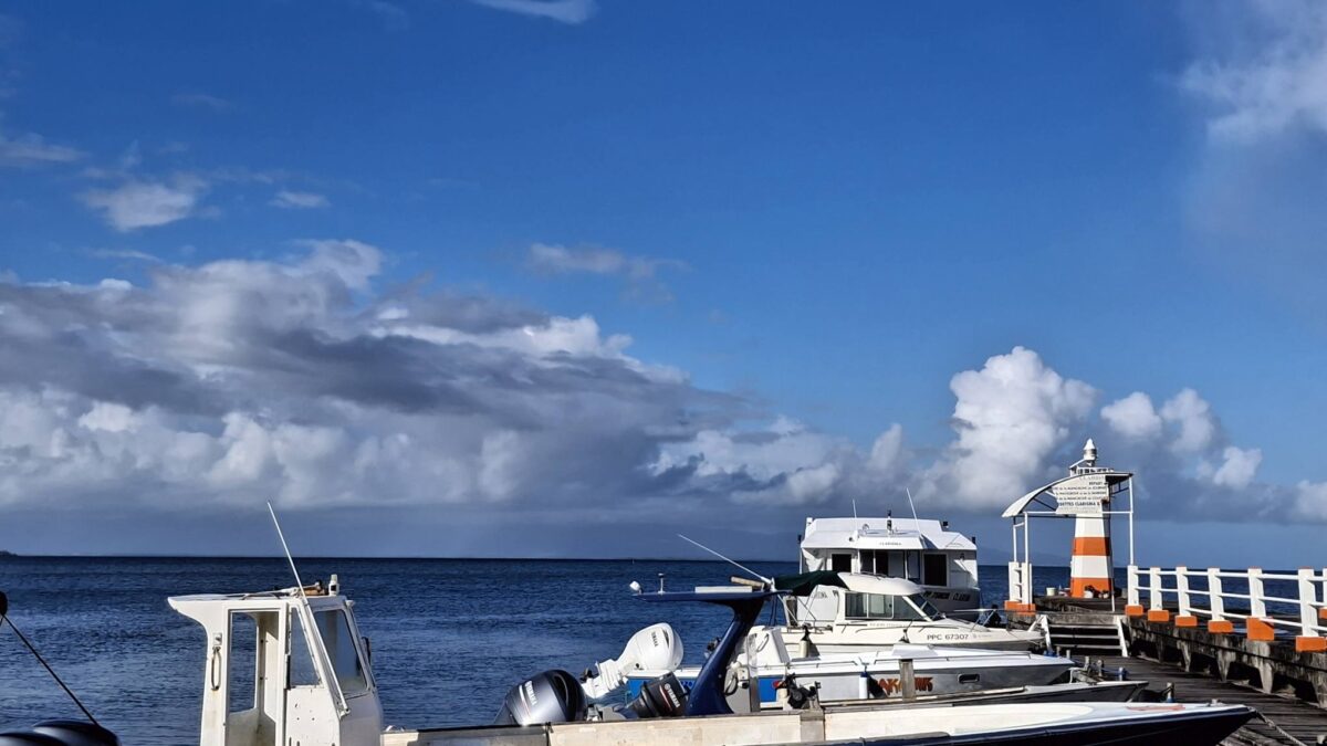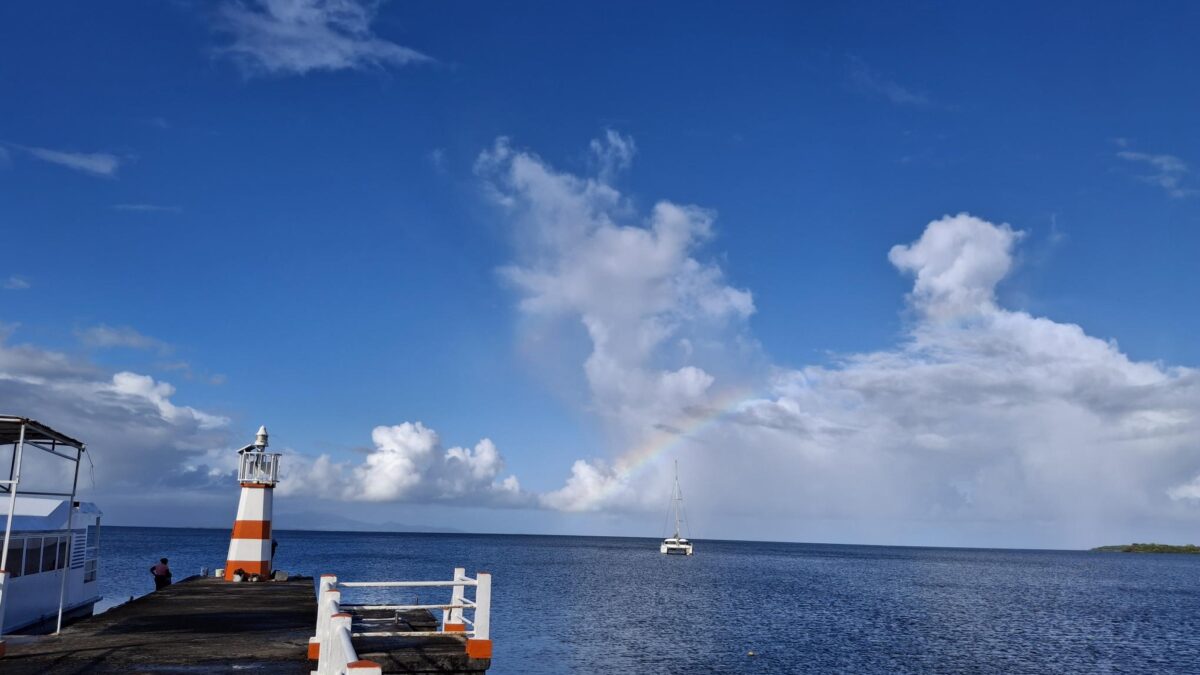 Seit gestern früh wären wir jetzt aber wieder abfahrtbereit. Stattdessen beschlossen wir gestern, die nächsten zwei Schauertage durchziehen zu lassen und die noch ruhigeren Morgenstunden zu nutzen, um mit dem Dinghy „Le Petit Canal“ zu erforschen. Das Örtchen ist wirklich „petit“, bietet aber einen perfekten Dinghysteg für die vielen Fischerboote, die von hier aus starten und auch eine Gedenkstätte mit Museum über die Sklaverei auf Guadeloupe.