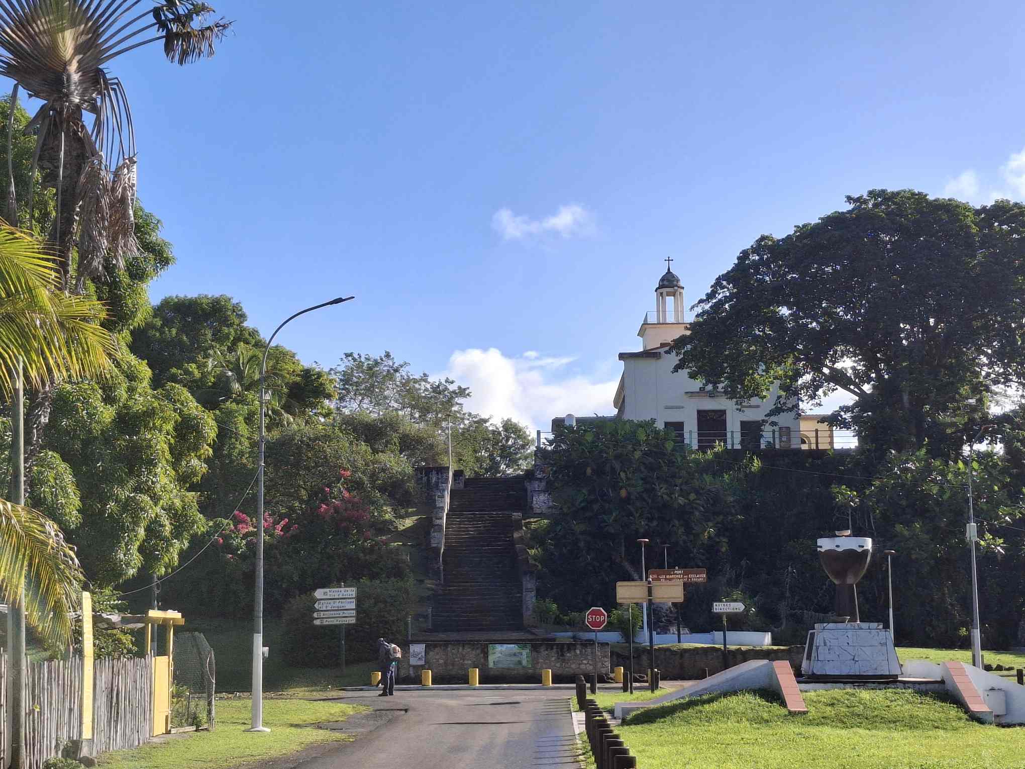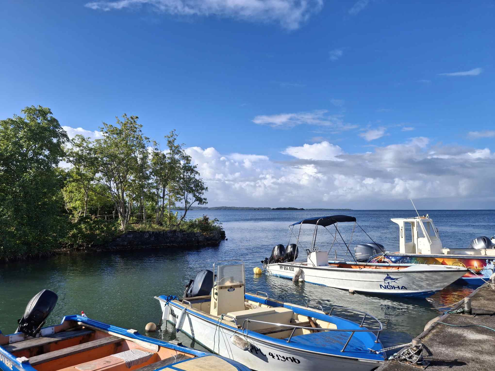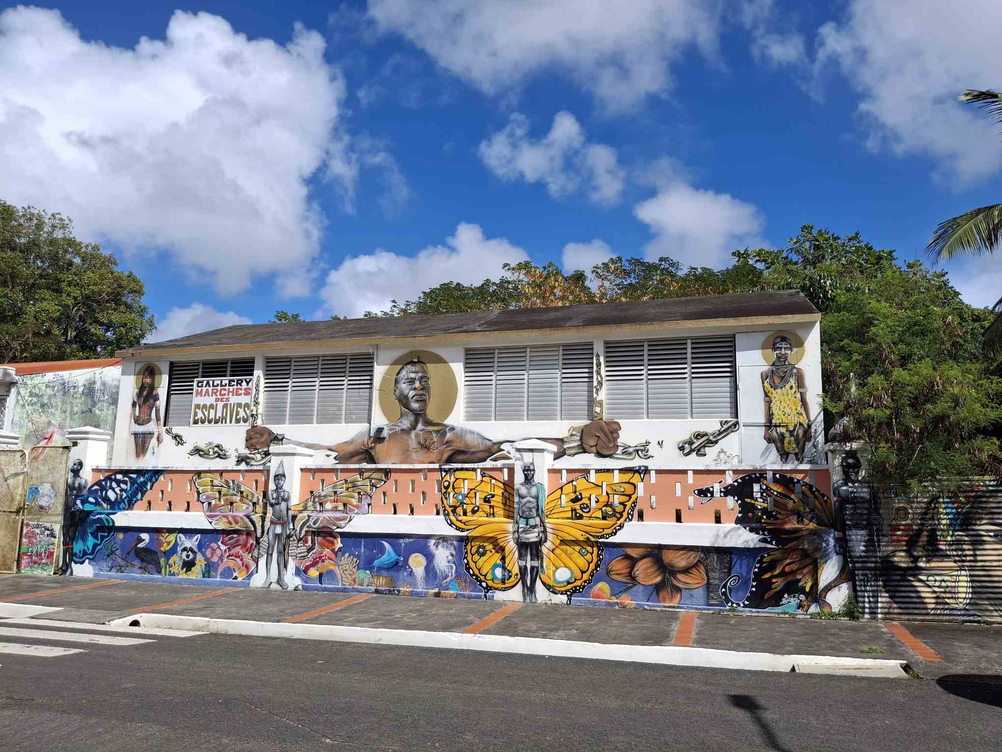 Seit gestern früh wären wir jetzt aber wieder abfahrtbereit. Stattdessen beschlossen wir gestern, die nächsten zwei Schauertage durchziehen zu lassen und die noch ruhigeren Morgenstunden zu nutzen, um mit dem Dinghy „Le Petit Canal“ zu erforschen. Das Örtchen ist wirklich „petit“, bietet aber einen perfekten Dinghysteg für die vielen Fischerboote, die von hier aus starten und auch eine Gedenkstätte mit Museum über die Sklaverei auf Guadeloupe.