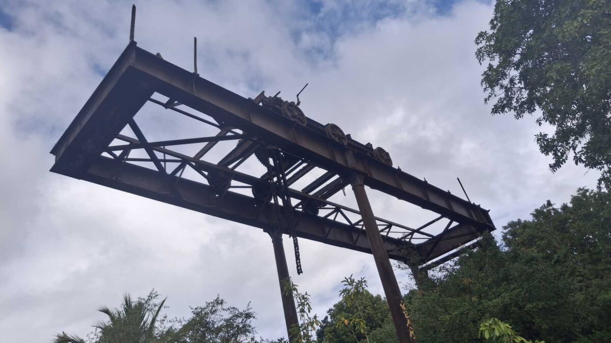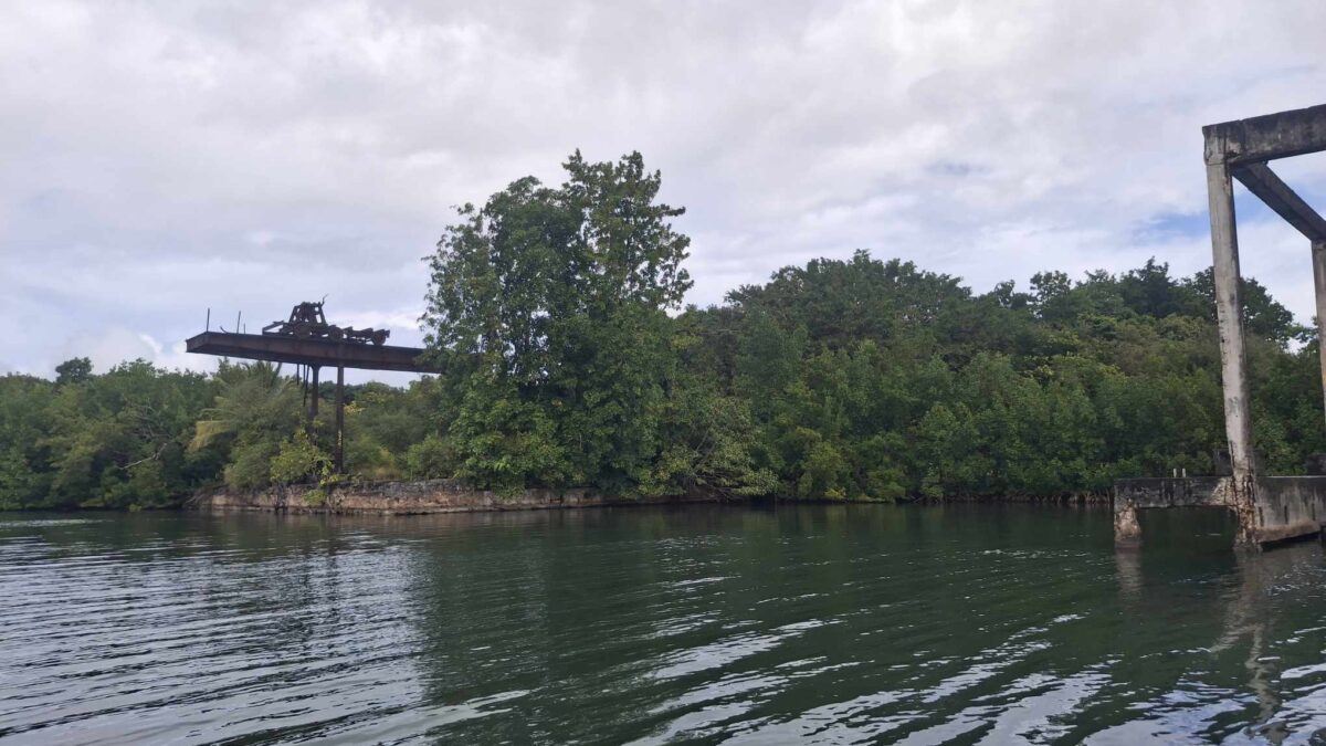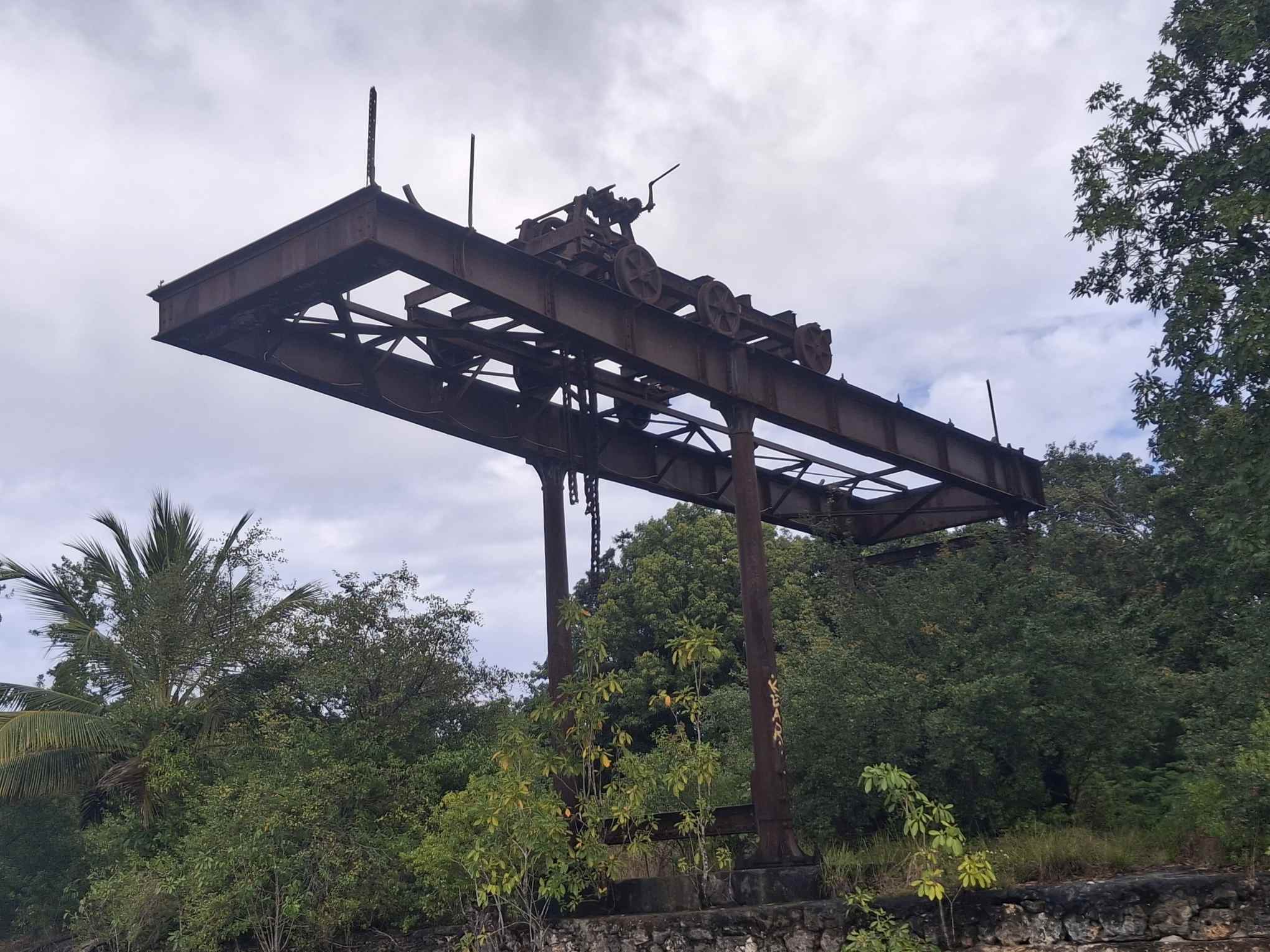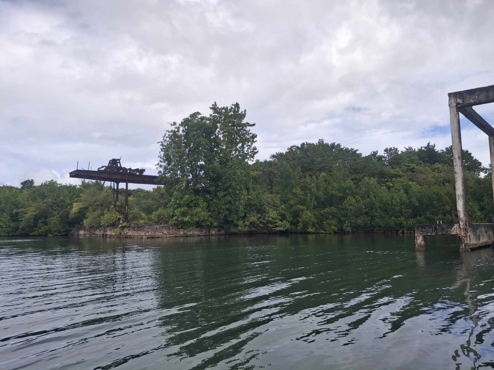 Am Rückweg erforschten wir noch mit dem Dinghy den alten Hafen mit einem inzwischen total verrosteten Kran mit Hand-Kurbelantrieb.