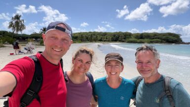 Trotz der geringen Fläche der Insel wird hier in grossem Stil Landwirtschaft betrieben, vor allem wird aber Zuckerrohr angebaut, welcher wiederum hauptsächlich zu Rum verarbeitet wird. Spannend war der Blick auf die alten Anlagen, welche immer noch wie früher funktionieren – mit der Ausnahme, dass das Getriebe der Zuckerrohrpresse nicht mehr durch eine Dampfmaschine, sondern durch einen Motor angetrieben wird. Bei der Weiterfahrt durch die Mitte der Insel erspähten wir immer wieder heute stillgelegte Windmühlen, weswegen Marie Galante auch die „Insel der 100 Windmühlen“ genannt wird. Nach einem Rundgang durch Grand-Bourg landeten wir nochmals am wunderschönen Strand zu einem Bad im Meer, bevor wir zurück nach Saint-Louis fuhren und den Dacia „plein et propre“ wieder bei der Autovermietung abgaben.