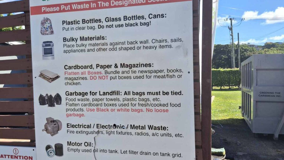 Am 26.12. waren wir auf St. Lucia in der Rodney Bay noch kurz mit dem Dinghy in die Lagune zur Marina gefahren und hatten sie erkundet. Es ist eine offensichtlich für alle Bedürfnisse der Marinabesucher voll ausgerüstete Marina, inklusive Laden (mit Marinapreisen – also ziemlich überteuert), Autovermietung und getrennter Kehrichtentsorgung. Angesichts des Zustands der Boote, die neben der Marina an den Marinabojen hängen, würden wir uns wohl eher für eine Box als für eine Boje entscheiden, sollten wir mal für ein paar Tage hierher zurückkehren und Landausflüge machen wollen.