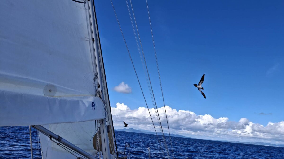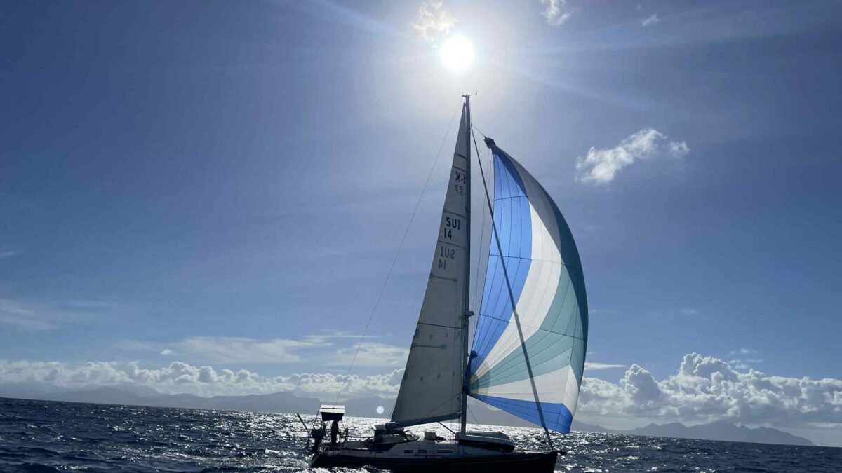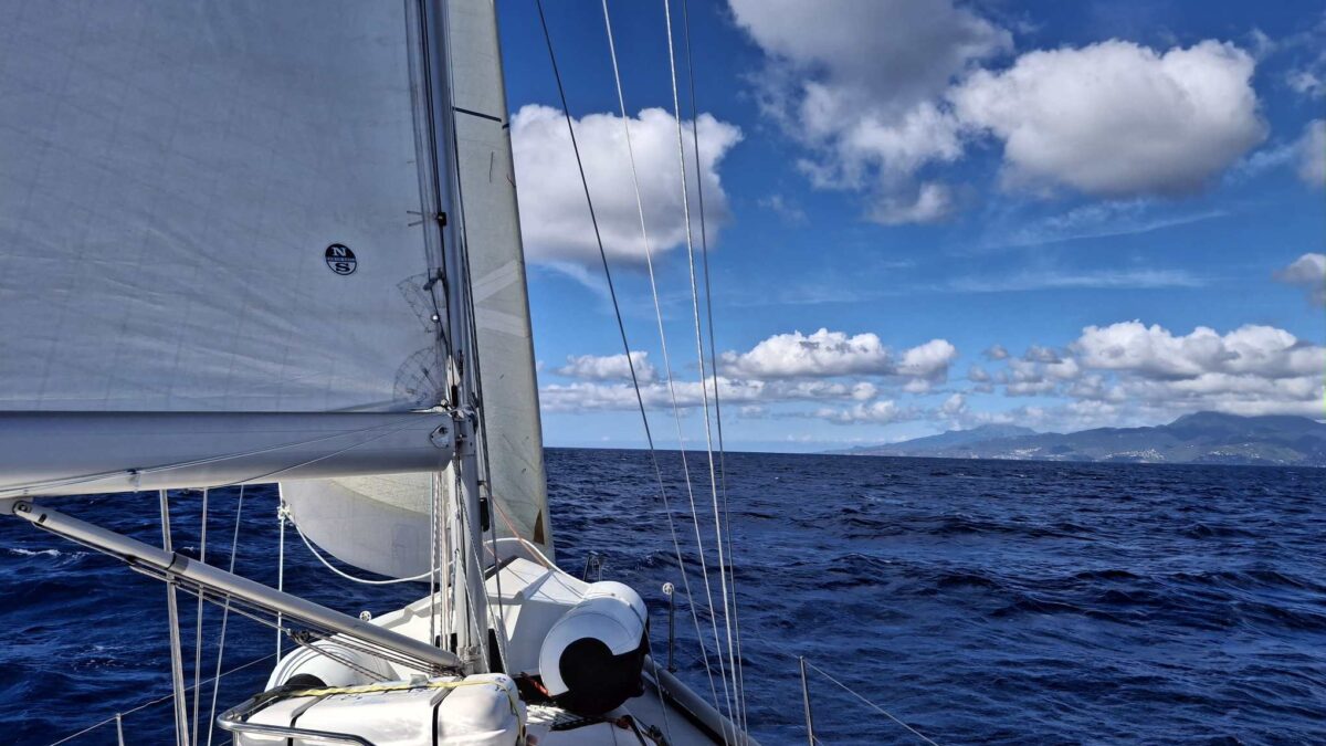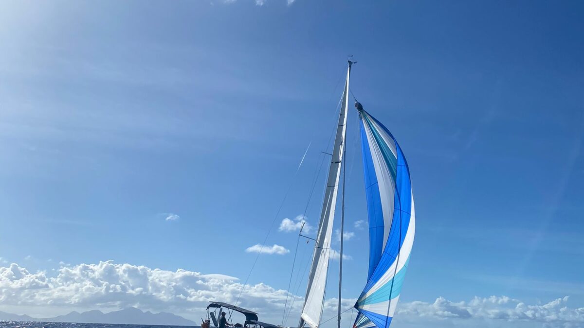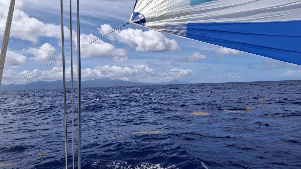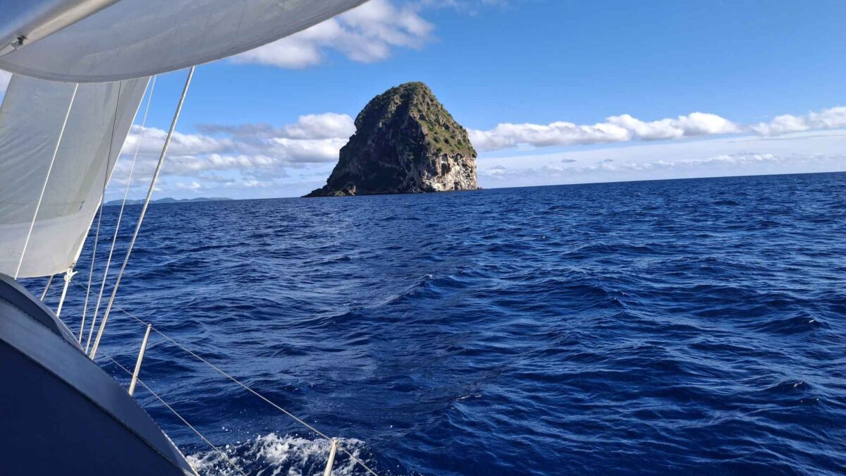 Normalerweise ist das ein harter Amwindkurs, wenn nicht sogar Kreuzen nötig wird. Für uns galt dies diesmal nicht: wir hatten Südost- und dann sogar Südsüdostwind. Sehr ungewöhnlich für diese Jahreszeit! Aber wir wollten uns ganz und gar nicht beklagen. So bald wie möglich kam der Gennaker hoch und wir spulten die Meilen entlang der grünen Insel Dominica nur so ab.