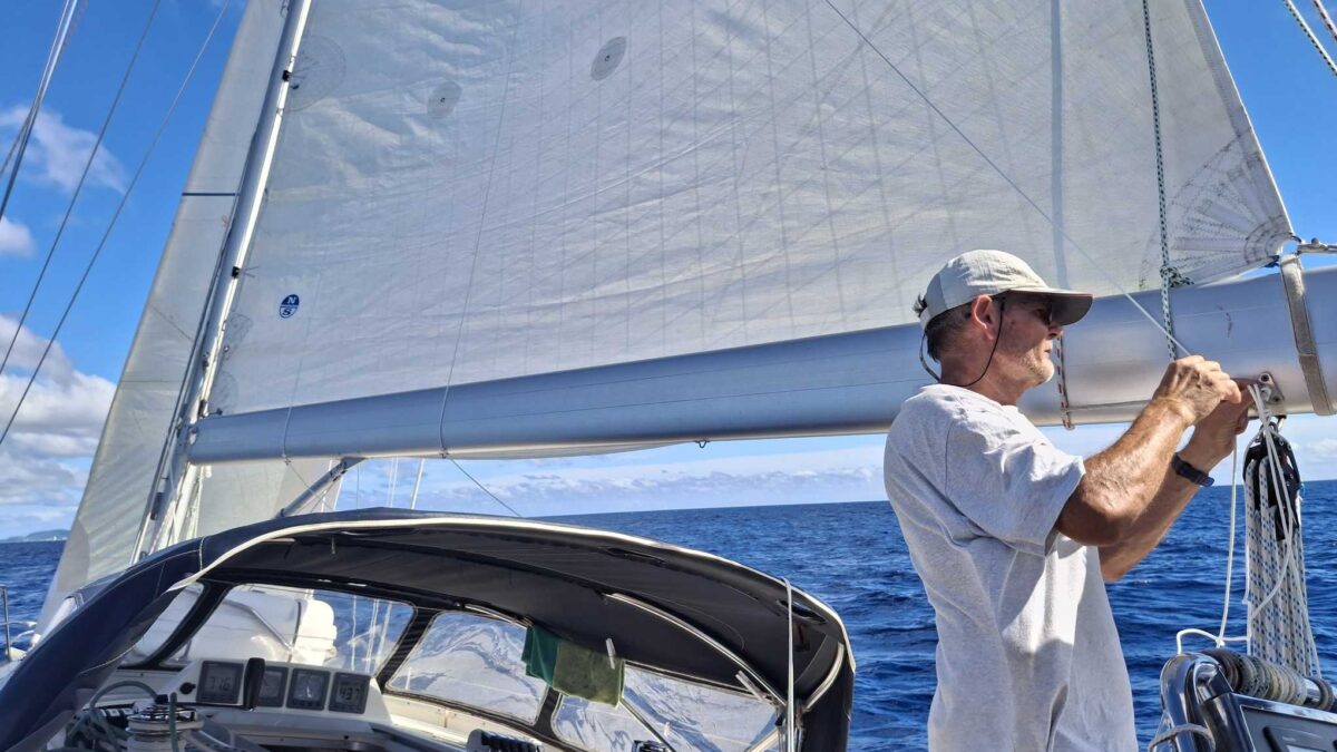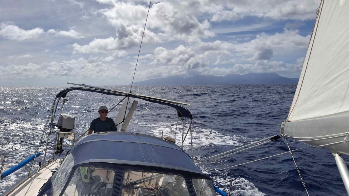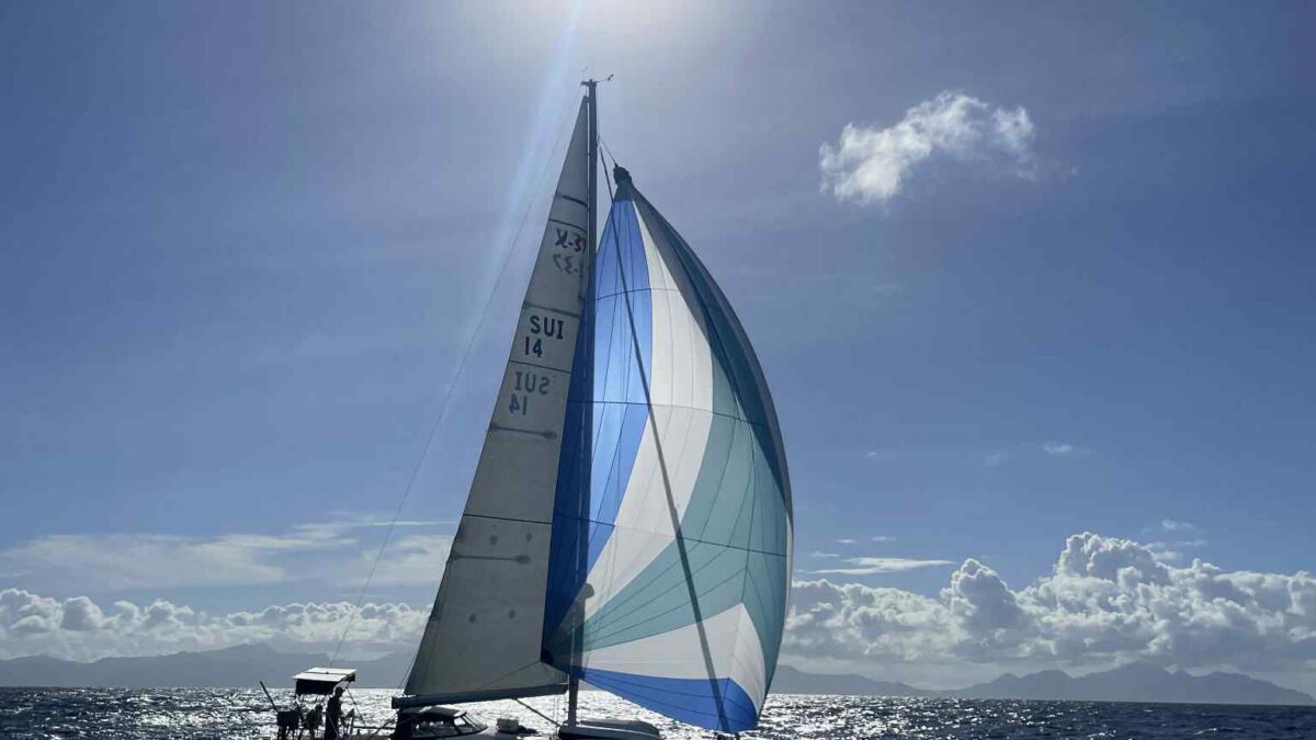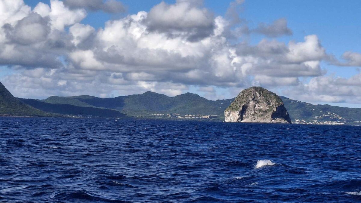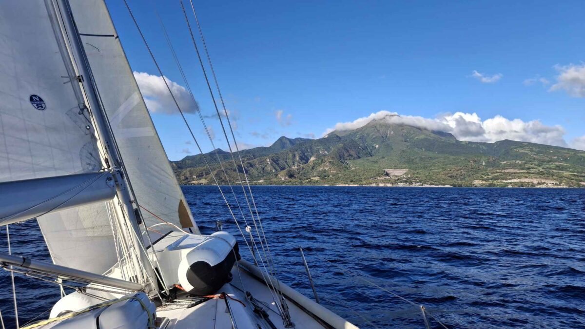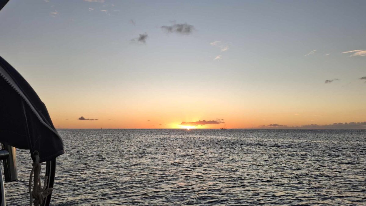 Normalerweise ist das ein harter Amwindkurs, wenn nicht sogar Kreuzen nötig wird. Für uns galt dies diesmal nicht: wir hatten Südost- und dann sogar Südsüdostwind. Sehr ungewöhnlich für diese Jahreszeit! Aber wir wollten uns ganz und gar nicht beklagen. So bald wie möglich kam der Gennaker hoch und wir spulten die Meilen entlang der grünen Insel Dominica nur so ab.