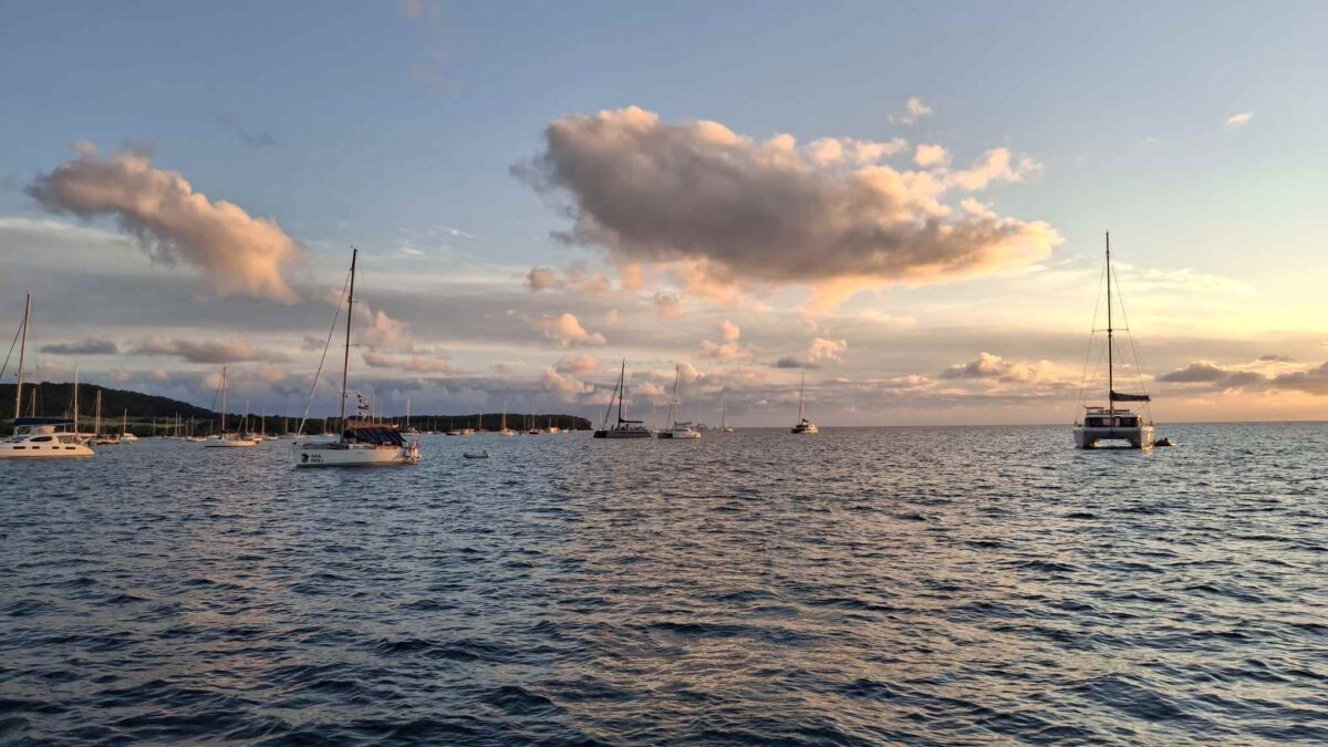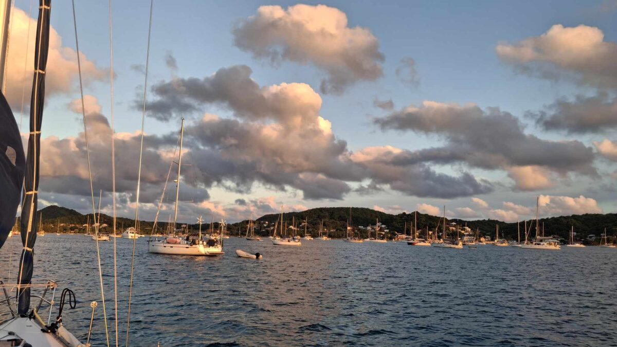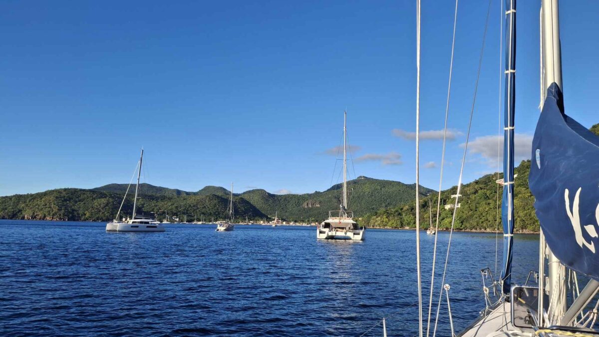 Am Sonntag, dem 28.12. segelten wir nachmittags im glatten Wasser die 15 SM nach St. Anne hinüber, während der Skipper unterwegs die neuen Lazy Jacks montierte.