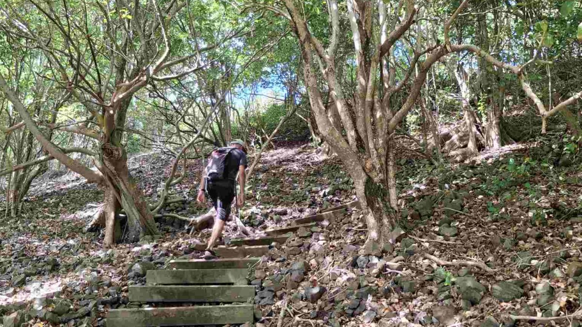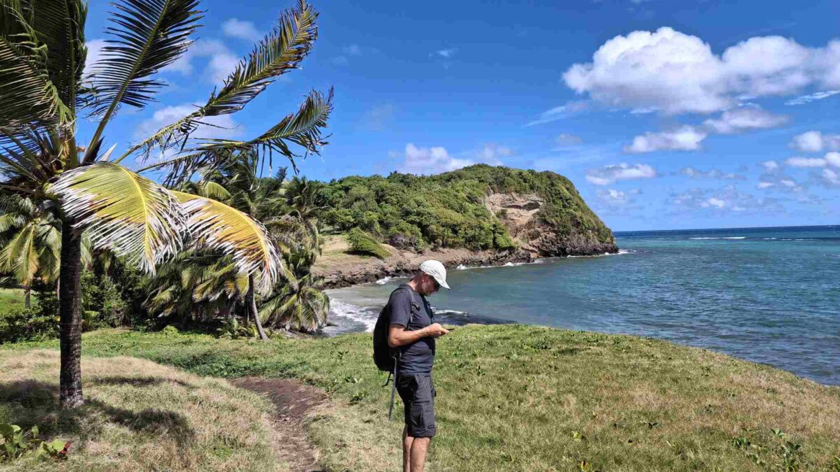 Tags darauf, für Silvester-Abend war Michelle’s Ankunft im Plan. Vormittags erkundeten wir wieder einige Kilometer lang die Insel inland, dann nahmen wir den Wanderweg von Les Anses d’Arlet über die Pointe Lézarde zur Grande Anse. Wie so oft entpuppte sich der Küstenweg als steiles und anspruchsvolles Auf und Ab (gefühlt vor allem Auf 😊), das die eine oder andere Touristin und Wanderer offenbar etwas unterschätzt hatte.