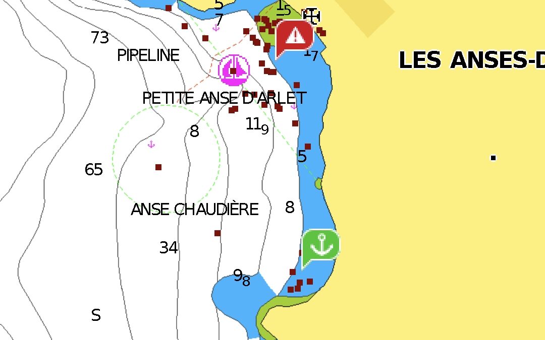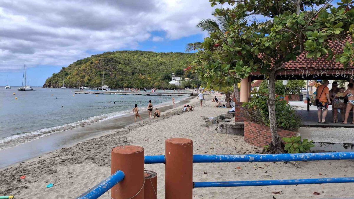 Auch ein paar Meter weiter inland zum grossen, trotz Boxing Day offenen Supermarket gings noch, aber dann war der Drang, weiter zu segeln allmählich doch so gross, dass wir innerhalb von kurzer Zeit das Boot bereit hatten und nordwärts in Richtung Martinique segeln konnten. Der Kurs nach St. Anne, das an der Südostecke von Martinique, gleich ausserhalb des tiefen Einschnitts von Le Marin liegt, war sehr hart am Wind. Nach einigen Salzduschen hatten wir genug und fielen ein wenig ab auf die Südwestecke der Insel zu. Dort liegt die Anse d’Arlet und ganz in deren Süden die Anse Chaudère.