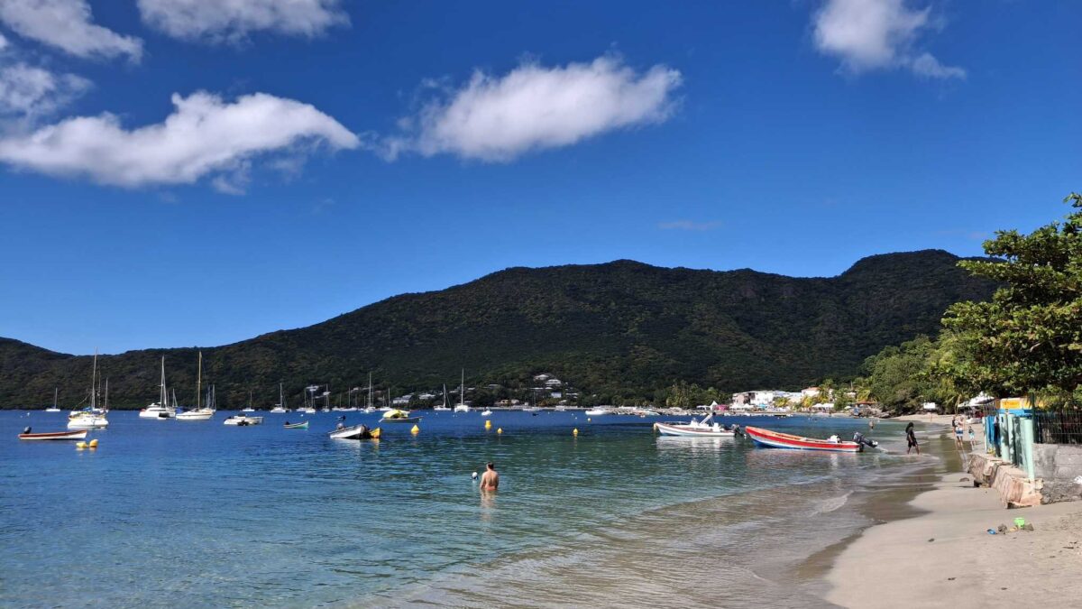 In der riesigen Bucht von St. Anne liegen meistens mehrere Hundert Boote. Sie ist bis weit hinaus nur ca. 6-7m tief mit praktischem Sandboden und klarem Wasser, und liegt für ein gutes Dinghy in praktischer Distanz zum Martiniquinischen Seglermekka Le Marin. Da die Bucht so breit und offen ist, wird das Wasser gut gespült und gewechselt und deshalb haben wir keine Bedenken, auch bei so vielen Booten in der Umgebung trotzdem darin zu schwimmen. Das ist im „Cul de Sac du Marin“ etwas weniger evident, denn diese Bucht ist eben das – eine tiefe Sackgasse mit nochmals Hunderten von Booten drin. Wir suchten uns also einen Platz „in der zweiten Reihe“ zum Strand, zogen den Anker schön fest ein und da lagen wir dann für die nächsten sechs Tage.