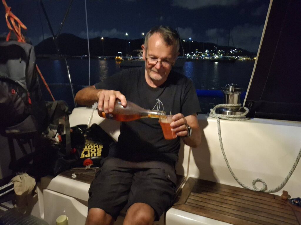Saint-Louis auf Marie Galante, unserer Lieblingsinsel in den französischen Antillen, erreichten wir nach ca. 12 Stunden schneller Fahrt. Es hatte schon eingedunkelt und wir mussten unseren Platz zwischen den anderen Ankerliegern suchen, noch bevor der Mond über das Hügelchen gestiegen war. Zum Glück kennen wir die Bucht schon recht gut und das Ankermanöver gelang an einem gut passenden Ort, ausserhalb der Einfahrtschneise für die Fähre. Mit dem Anker auf 6m unten im sogar nachts sehr klaren Wasser und einem etwas verspäteten Sundowner in der Hand konnten wir die friedliche Ruhe unter den Sternen vor Marie Galante wirken lassen. (Und Michelle hatte ihr einziges Ziel für diese zwei Wochen Segeln erreicht: Marie Galante. Peter Reber hatte mit seinem Song über die Insel wohl auch noch seinen Anteil an diesem Plan gehabt.) Was für ein schöner Start ins neue Jahr!