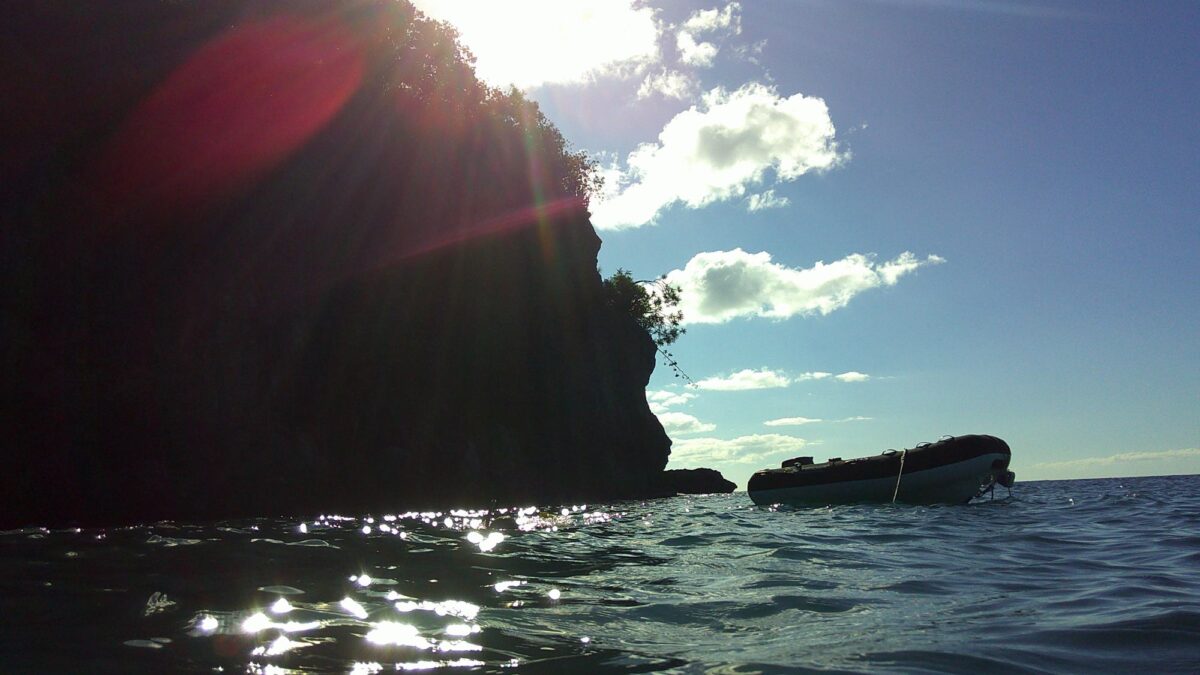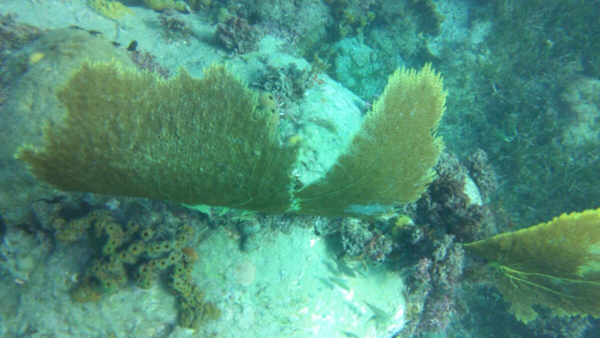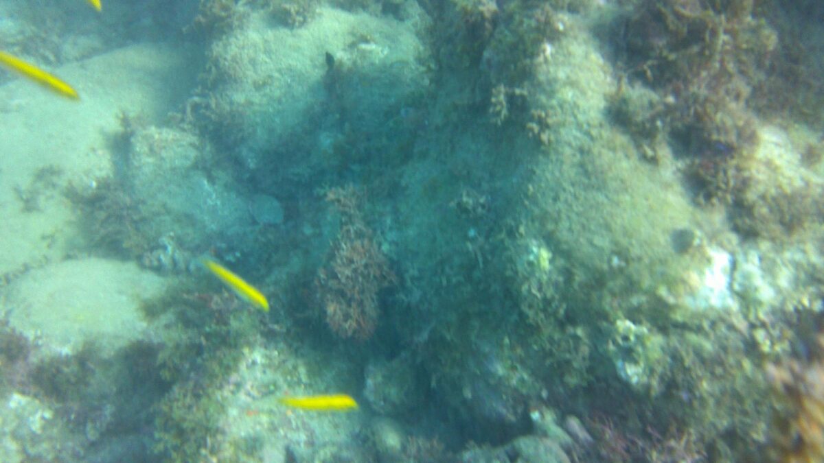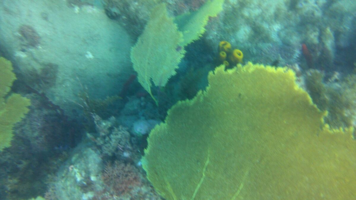 Ich nutzte den nächsten Tag zum Arbeiten in schönster Umgebung, während der Skipper mit dem Dinghy die Gegend und Les Anses d’Arlet auskundschaften ging. Als er nachmittags zurückkam und von Schnorcheln redete, war es vorbei mit meiner Konzentration, geschweige denn mit der Motivation. Unter Wasser bot sich uns eine recht vielfältige Korallenwelt mit vielen Fächerkorallen, Röhren und auch einigen schönen Seeanemonen. Dazu grössere und kleinere Schwärme von farbenfrohen Fischen, wenn auch keine besonders Grossen. Das Wasser war aber sehr trüb aufgewühlt und meine kleine wasserdichte Kamera damit vollkommen überfordert. (Und vielleicht ja auch die Person hinter der Linse. 😊)