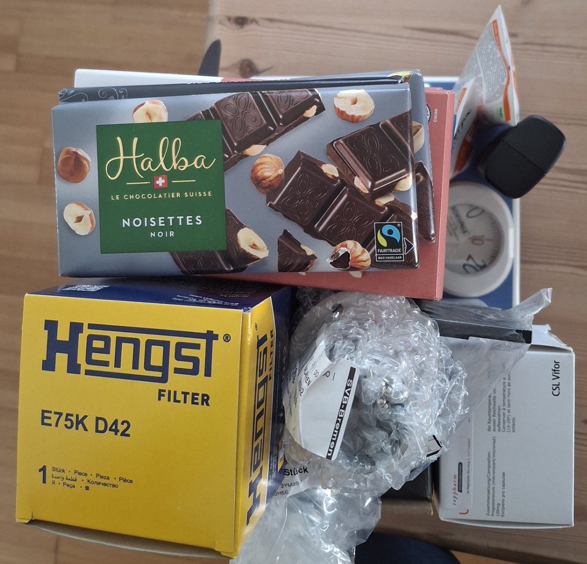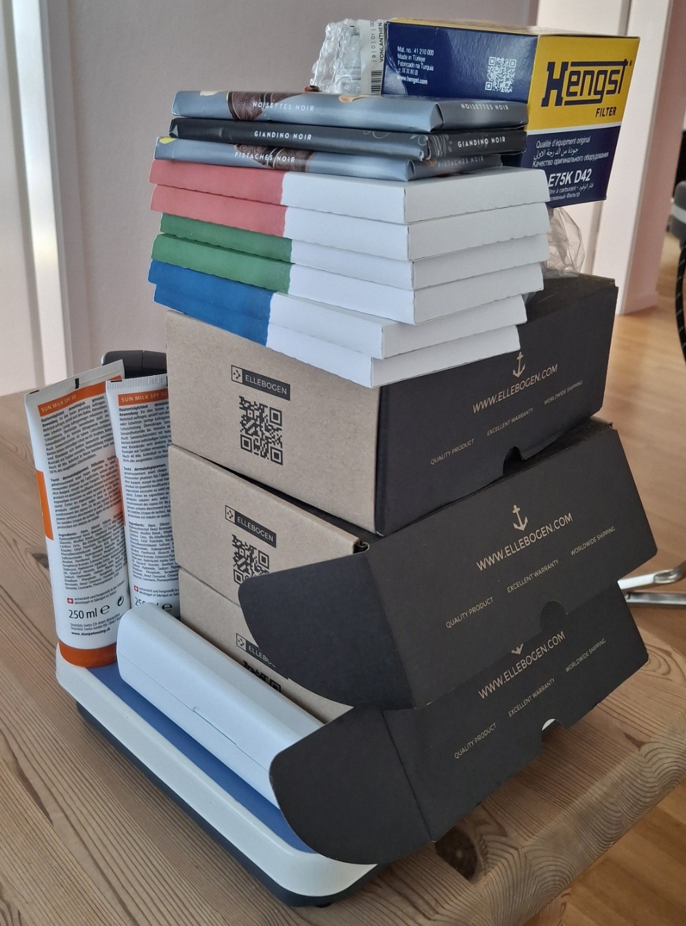 Zufällig befanden sich zwei Gäste unserer Freunde Karin und Marc von der St. Raphael auf dem gleichen Flug ab Madrid nach San Juan und so stiegen wir bald zu dritt in das Mietauto zum Fahrer Uber-Bänz, mit dreimal Gepäck und einmal Einkauf. Bei meinen knapp 22 kg Gepäck waren genau 2 T-Shirts und 2 Paar Shorts für mich persönlich, und der Rest setzte sich aus diversen Ersatzteilen (u.a. drei Motorfundamenten à je ca. 2kg), einer neuen Genuapersenning und nochmals etwas dunkler Nuss-Schoggi zusammen.