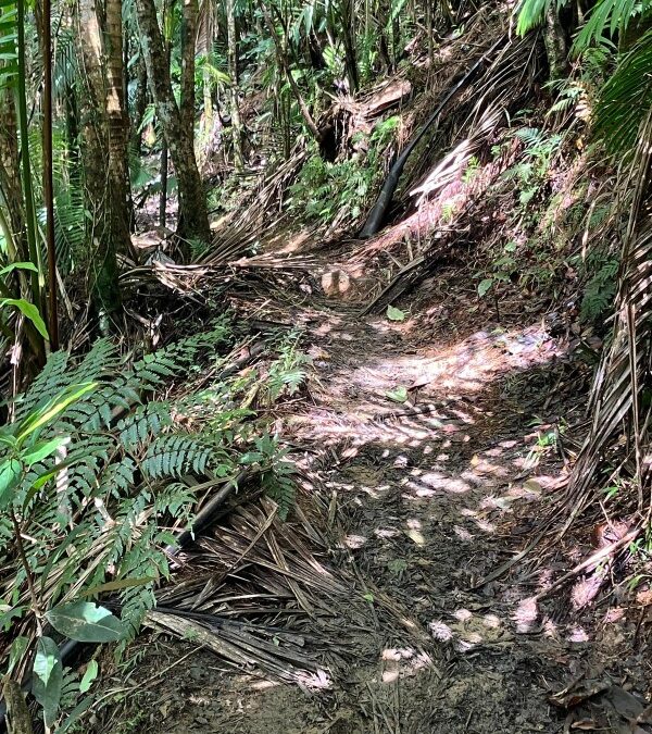 Bald schon konnten wir an Land losfahren, um unser Mietauto noch für den Rest des Tages zu nutzen. Wir suchten einen nicht zu weit entfernten Weg in den Yunque Nationalpark und fanden ihn an der PR191 bei Naguabo. Dort gibt es weit oben im Regenwald eine Recreation Area, die gleichzeitig Ausgangsort für diverse schöne Wanderungen ist. Einziger Wermuthstropfen: das Tor zur obersten Strecke wird um 17h geschlossen (die junge Freiwillige, die uns in Empfang nahm, betonte, dass sie ein Vorhängeschloss verwenden würde) und so müsste man für eine Wanderung frühmorgens schon dort sein. Der auf der Karte dünn eingetragene nach Norden weiterführende Weg sei schon seit den 80er-Jahren verschüttet und geschlossen.