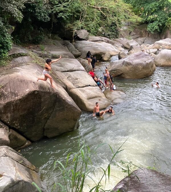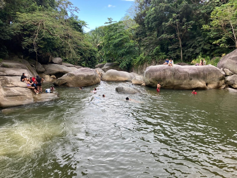 Es war aber auch so schön, ein paar Schritte im tropischen Grün zu machen und unsere Sandwiches am Fluss, statt in einem der schattigen Picknick-Häuschen zu verspeisen.