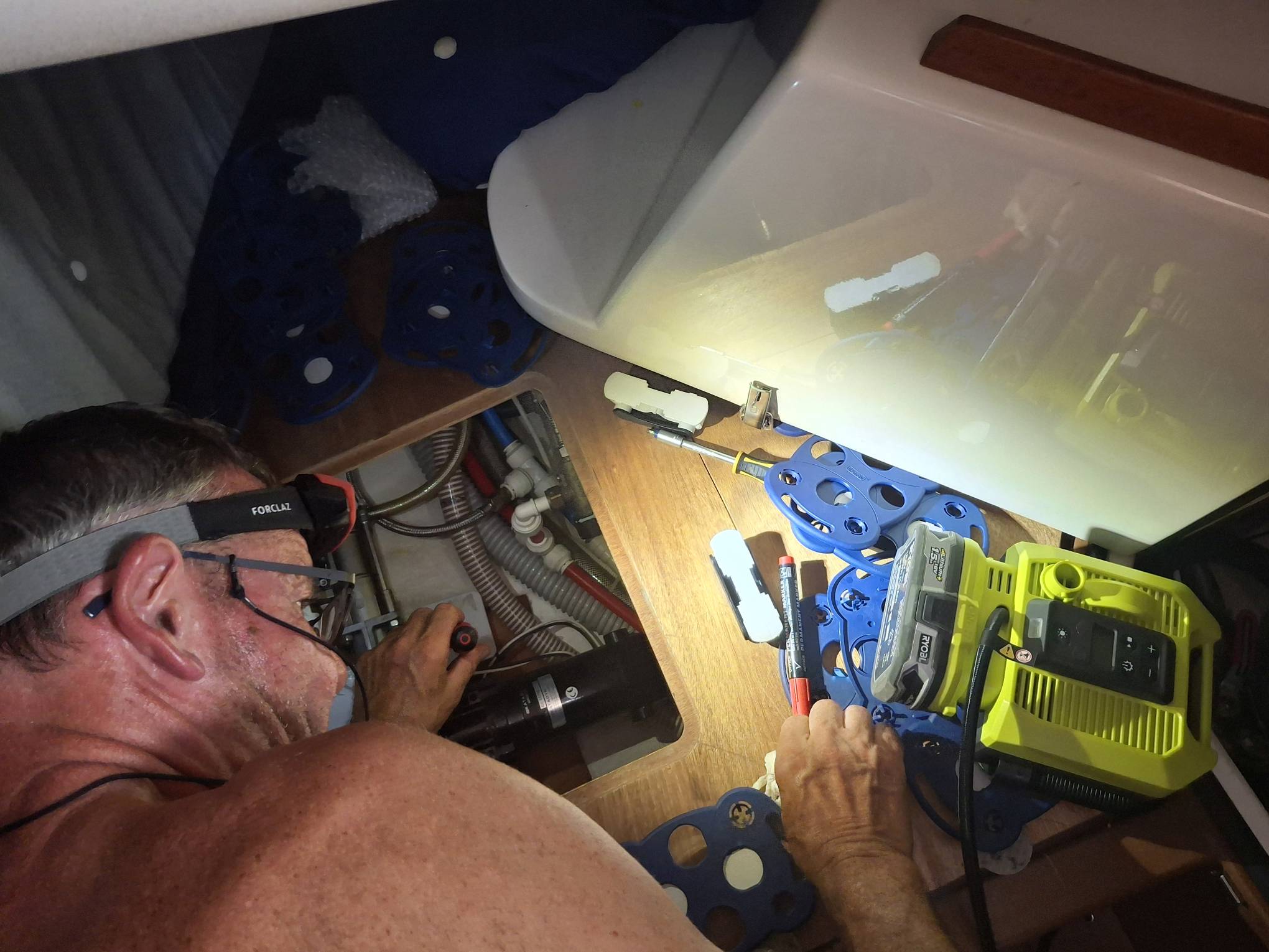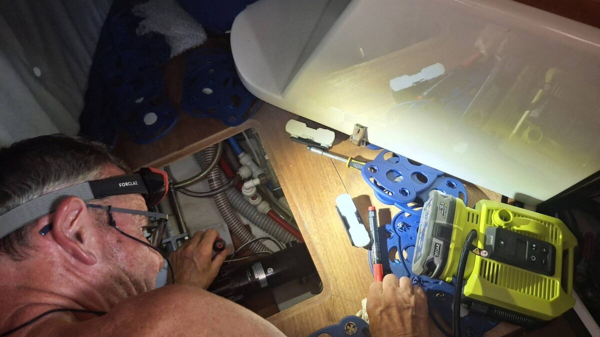 Zwei Stunden später hatte es der Skipper nach einer vollständigen Zerlegung und Rundumreinigung geschafft und unseren Wassermacher wieder zur Produktion überredet.
