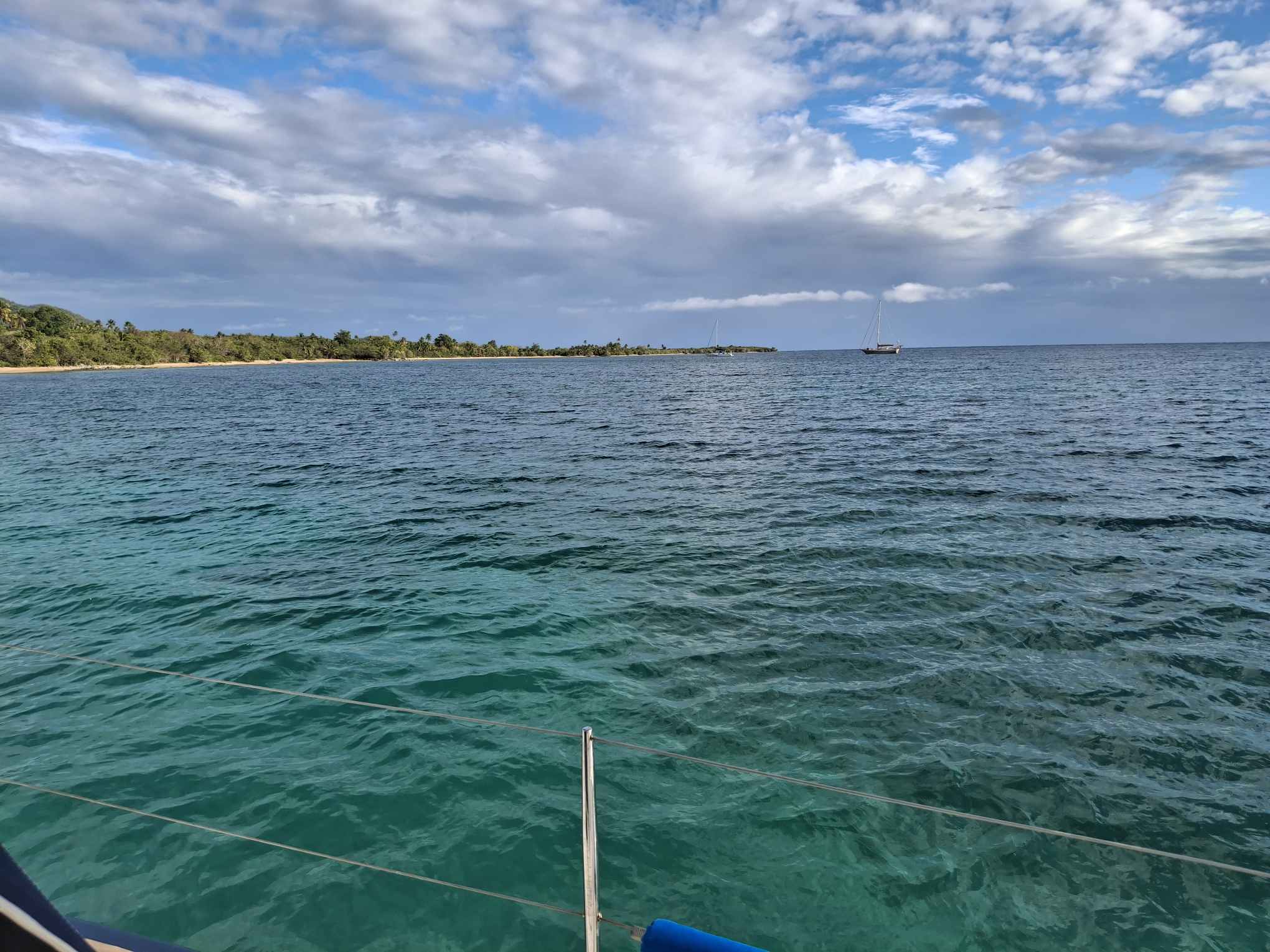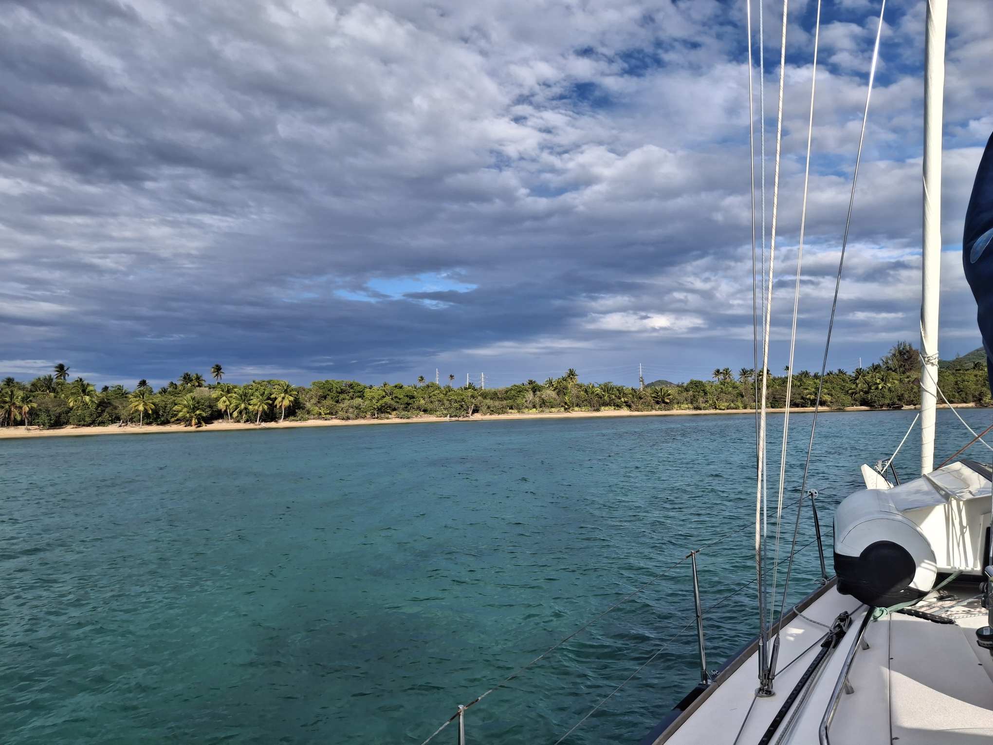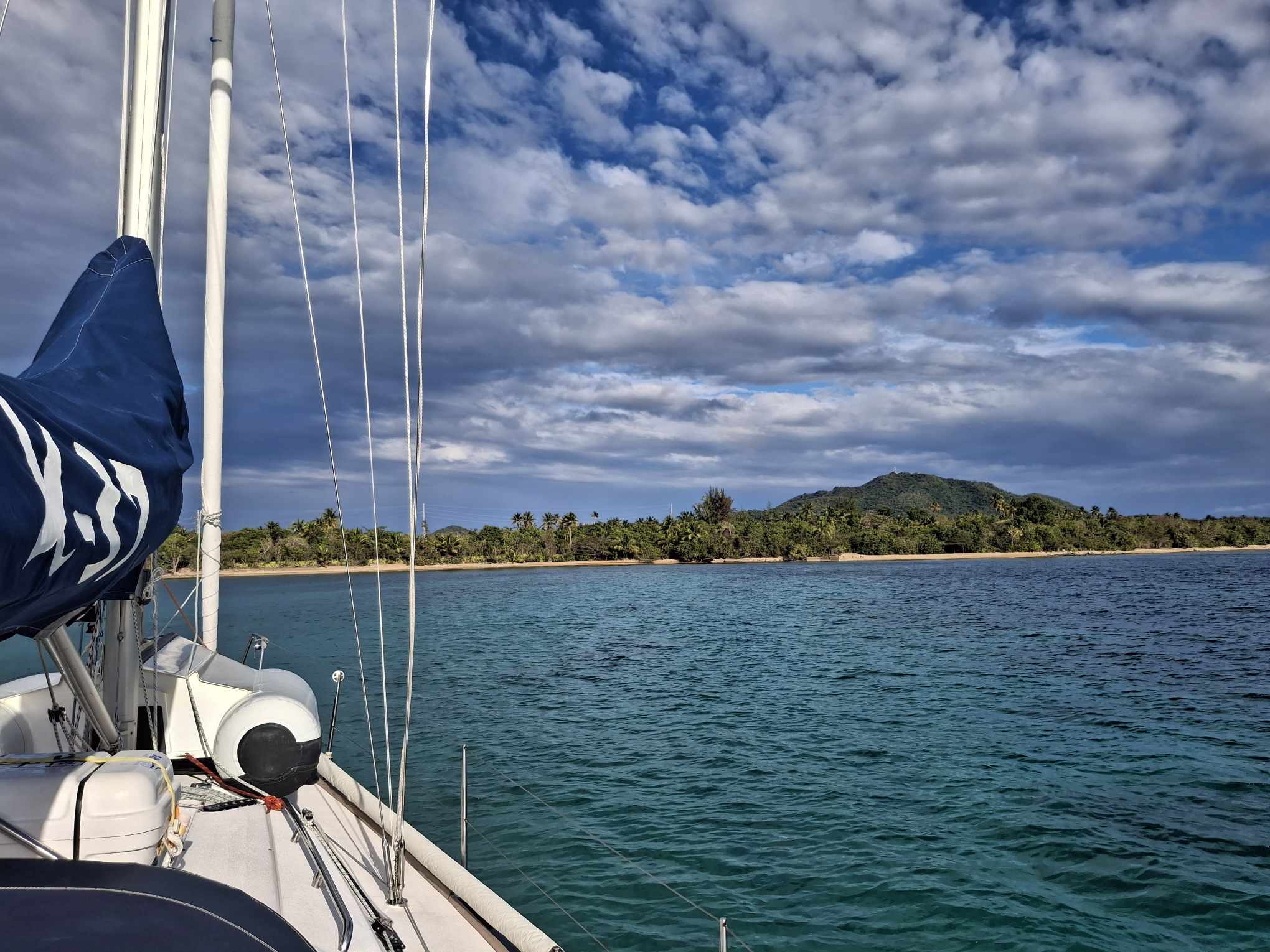 Am Dienstag nahmen wir es gemütlich. Es säuselte wirklich nur ein leichtes Lüftchen im Rigg. Zu wenig, um damit die 20 SM nach Culebra zu kreuzen. So gab es morgens noch einen schönen Schnorchelgang, bei dem ich wieder einem gepunkteten Adlerrochen bei seinem so elegant schwebenden „Flug“ durchs Wasser zusehen konnte. Danach tümpelten wir nur mit der Genua los, ums lange Riff auf die Nordseite von Vieques und nach Osten. Weil wir eigentlich immer damit rechneten, dass wir in der Flaute gleich den Motor starten müssten, waren wir zu faul, um das Grosssegel auszupacken. Aber auch so konnten wir ein paar Meilen ostwärts segeln.