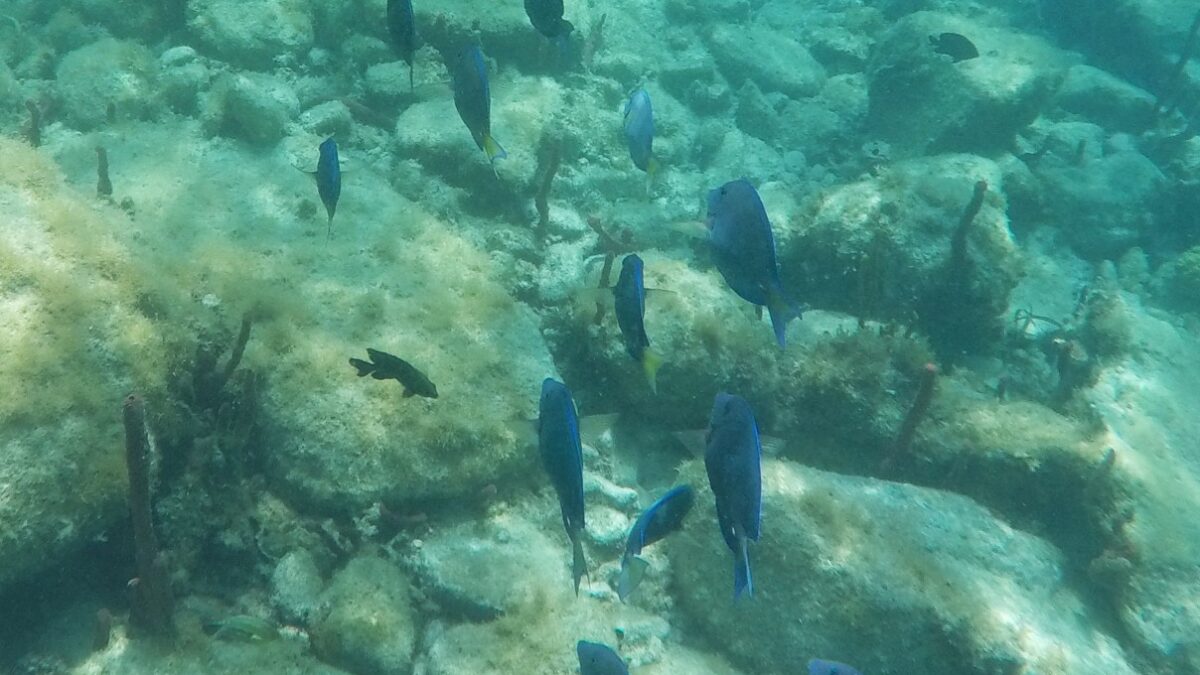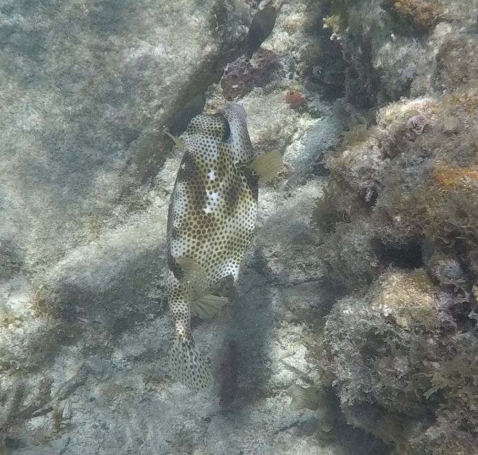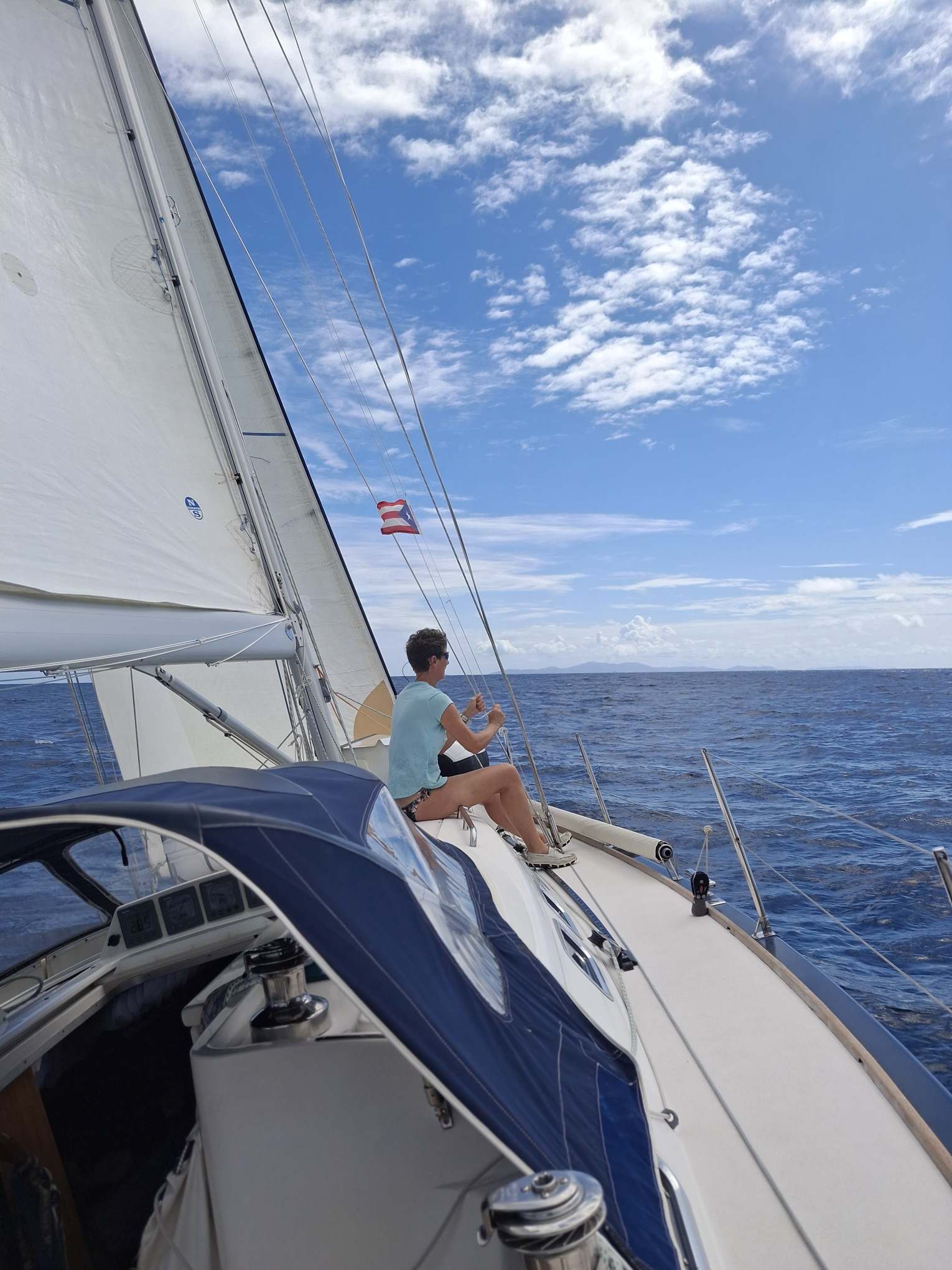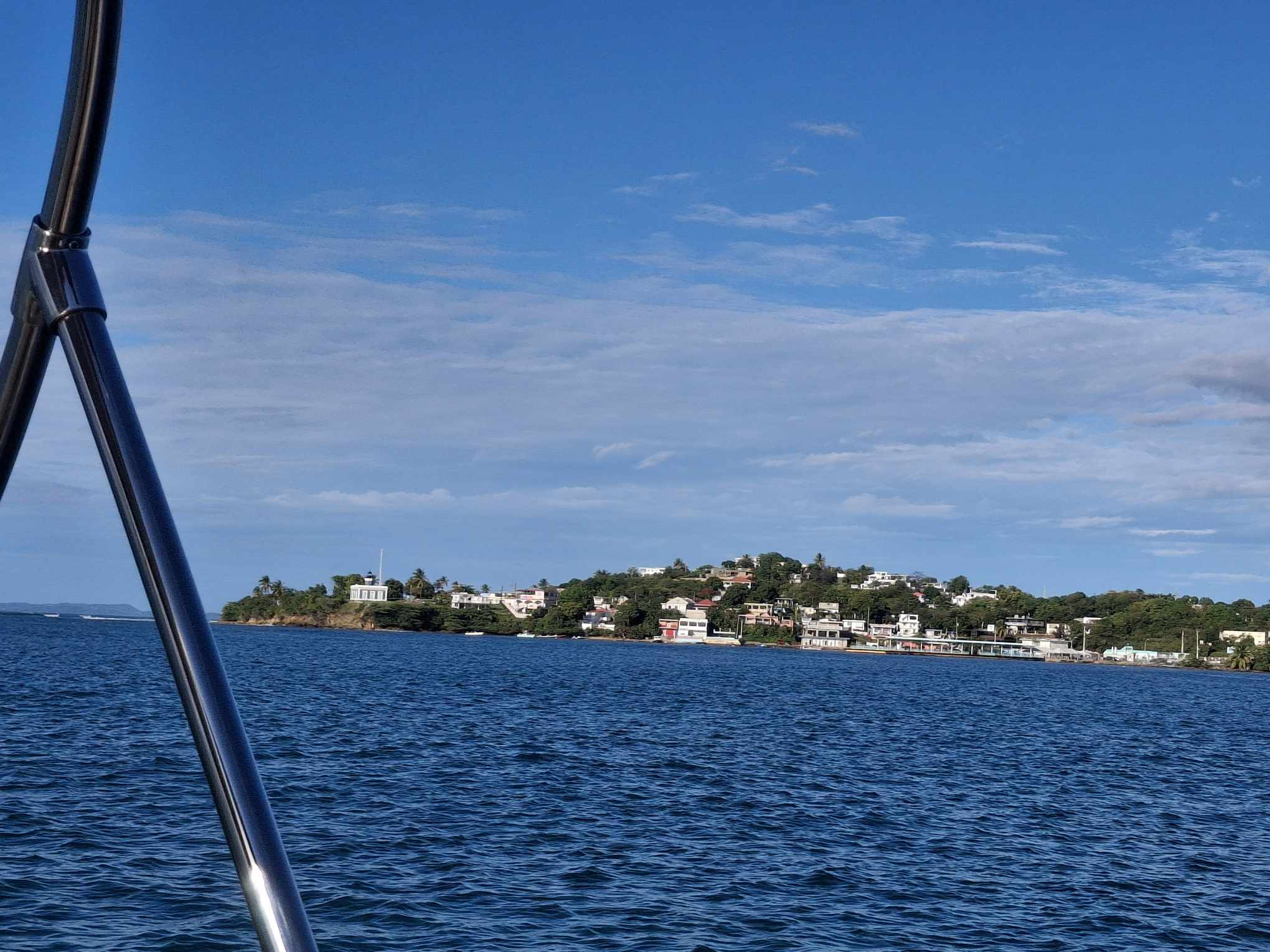 Am Dienstag nahmen wir es gemütlich. Es säuselte wirklich nur ein leichtes Lüftchen im Rigg. Zu wenig, um damit die 20 SM nach Culebra zu kreuzen. So gab es morgens noch einen schönen Schnorchelgang, bei dem ich wieder einem gepunkteten Adlerrochen bei seinem so elegant schwebenden „Flug“ durchs Wasser zusehen konnte. Danach tümpelten wir nur mit der Genua los, ums lange Riff auf die Nordseite von Vieques und nach Osten. Weil wir eigentlich immer damit rechneten, dass wir in der Flaute gleich den Motor starten müssten, waren wir zu faul, um das Grosssegel auszupacken. Aber auch so konnten wir ein paar Meilen ostwärts segeln.
