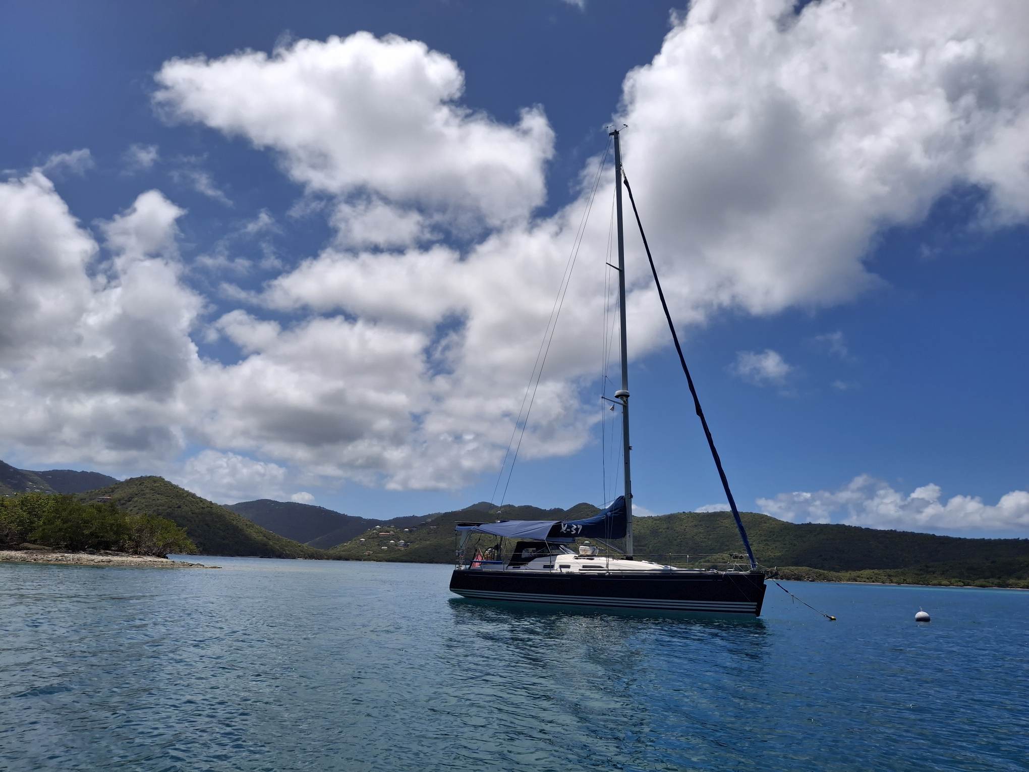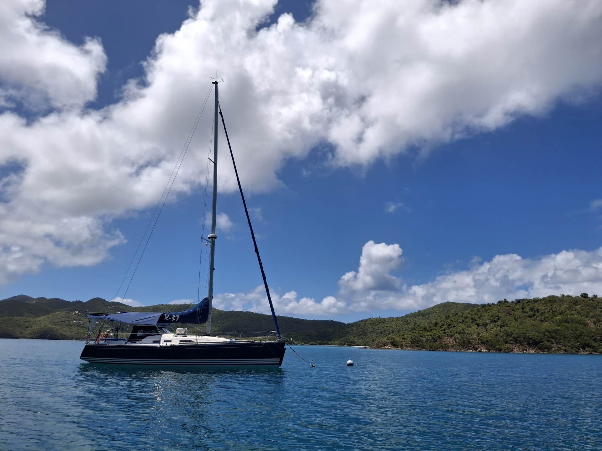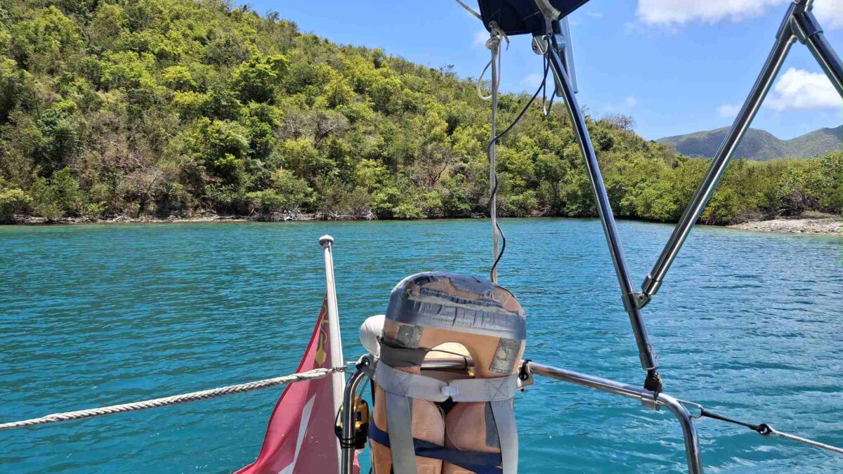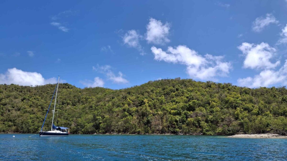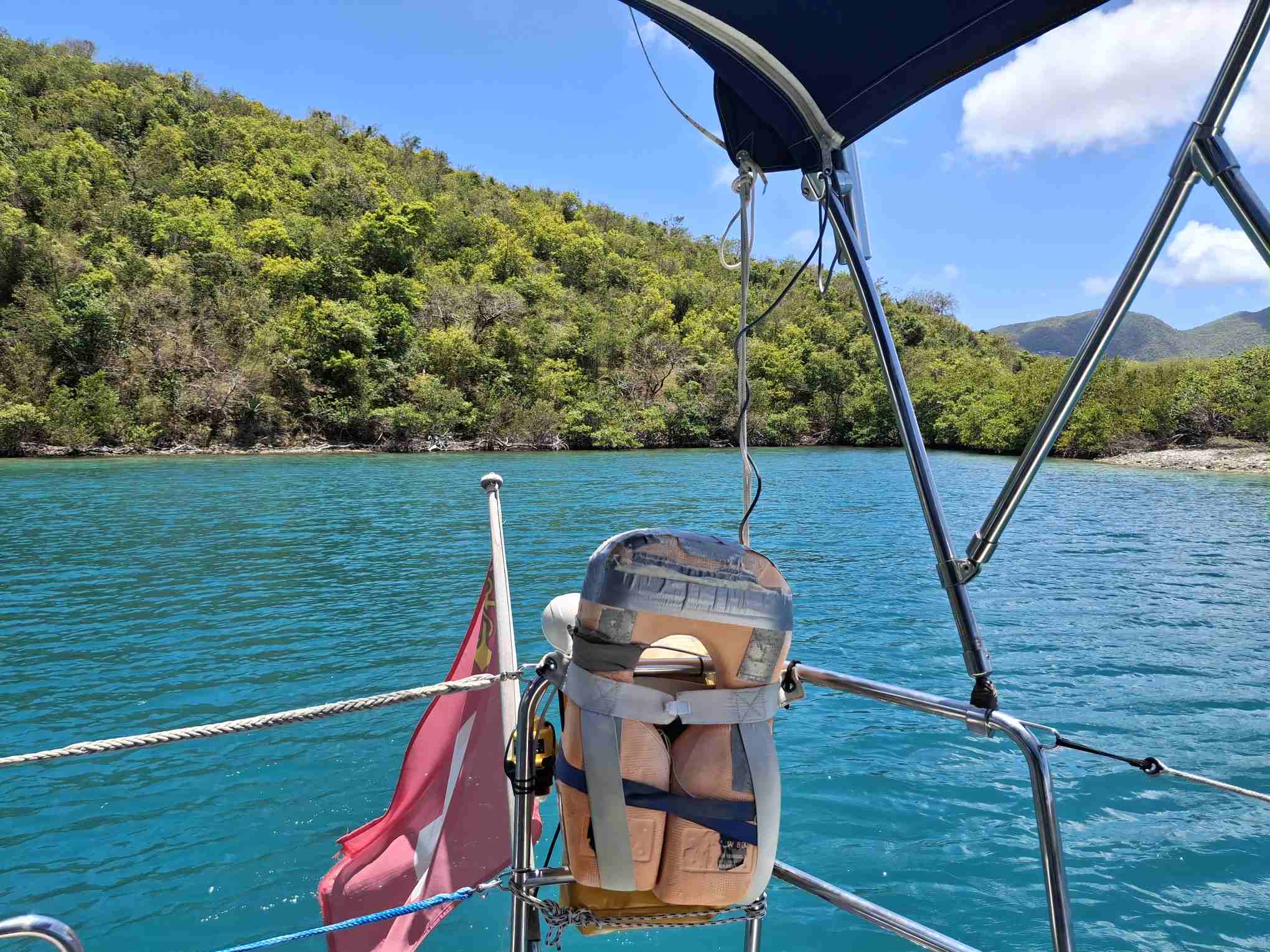 Nach dieser unruhigen Nacht war es mir ganz recht, am Mittwochmorgen bald nach Sonnenaufgang zu starten, um den inzwischen auf Südost gedrehten und gemässigten Wind für den Amwindkurs zu den USVIs zu nutzen. Unsere Devise war weiterhin, so weit nach Osten zu kommen, wie nur möglich. Denn der nächste grössere Sprung von ca. 100SM wird nach Südosten führen. Bei normalerweise vorherrschendem Ostwind ist es deshalb sinnvoll, möglichst weit im Osten starten zu können, um nicht gegenan kreuzen zu müssen. Wir verbrachten einen wunderbar sonnigen Tag mit schönem Amwindsegeln nach St. Thomas, wo wir nach zwei Kreuzschlägen ein Plätzchen in der berühmten Christmas Cove ergattern wollten.