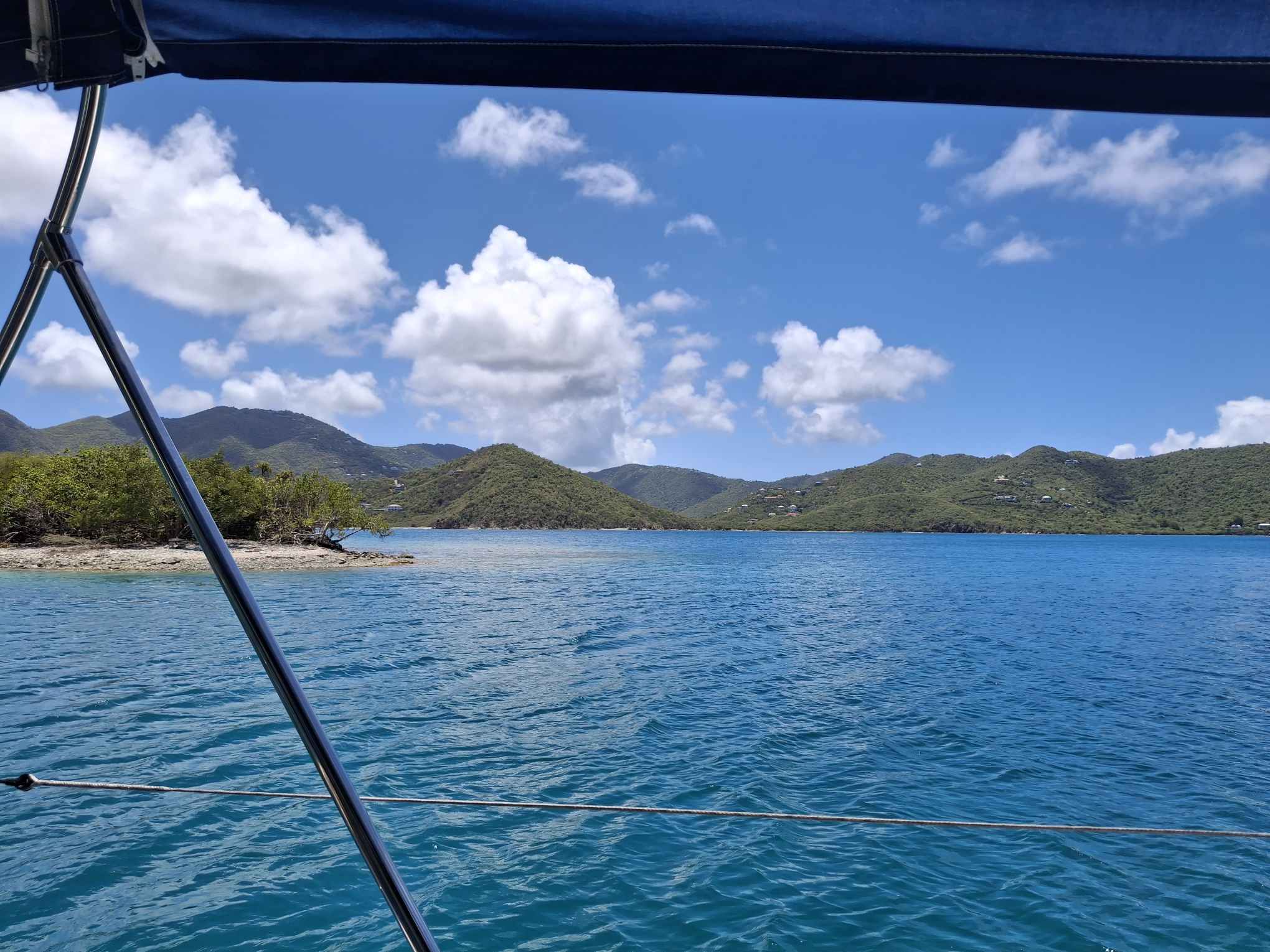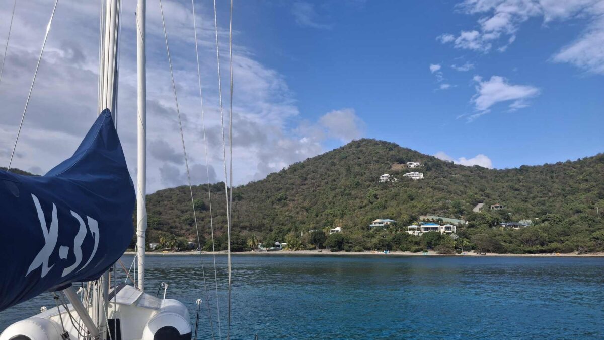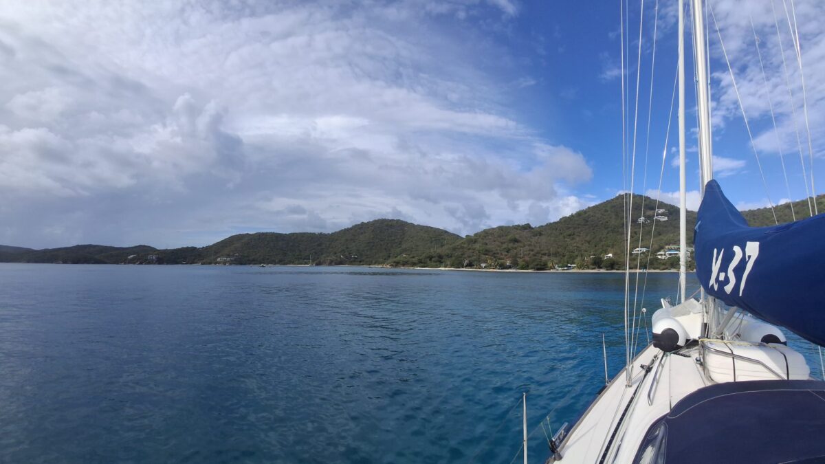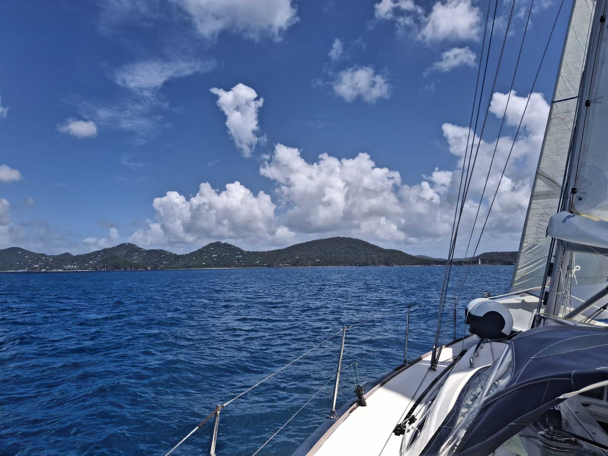 Auch für Donnerstag war schönes Wetter und vernünftiger Wind aus Ost-Südost angesagt. Wir nutzten die Bedingungen für einen weiteren gemütlichen Amwind- und Kreuztag im geschützten Wasser zwischen den Inseln, bis an die Küste von Tortola, dann ums Ost-Ende von St. John’s herum in die Coral Bay.
