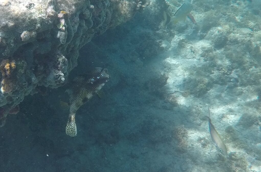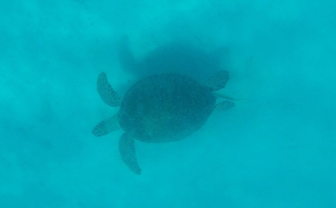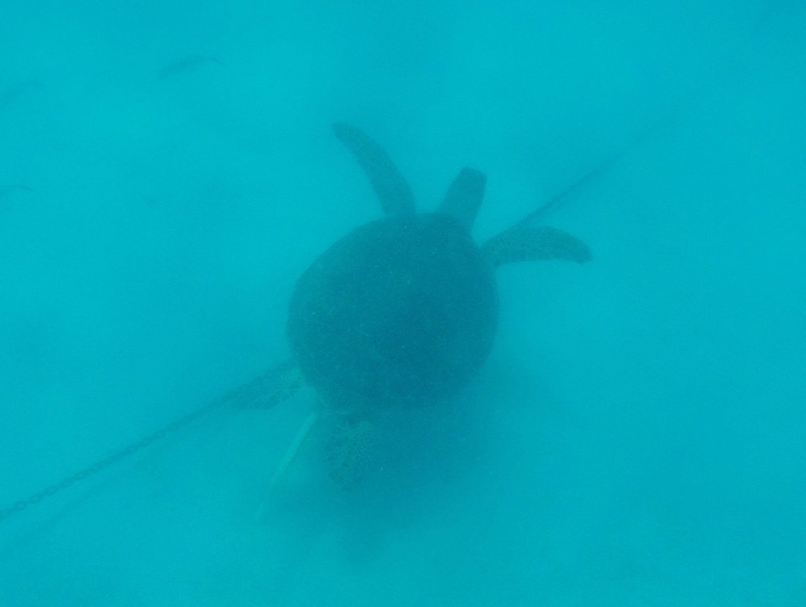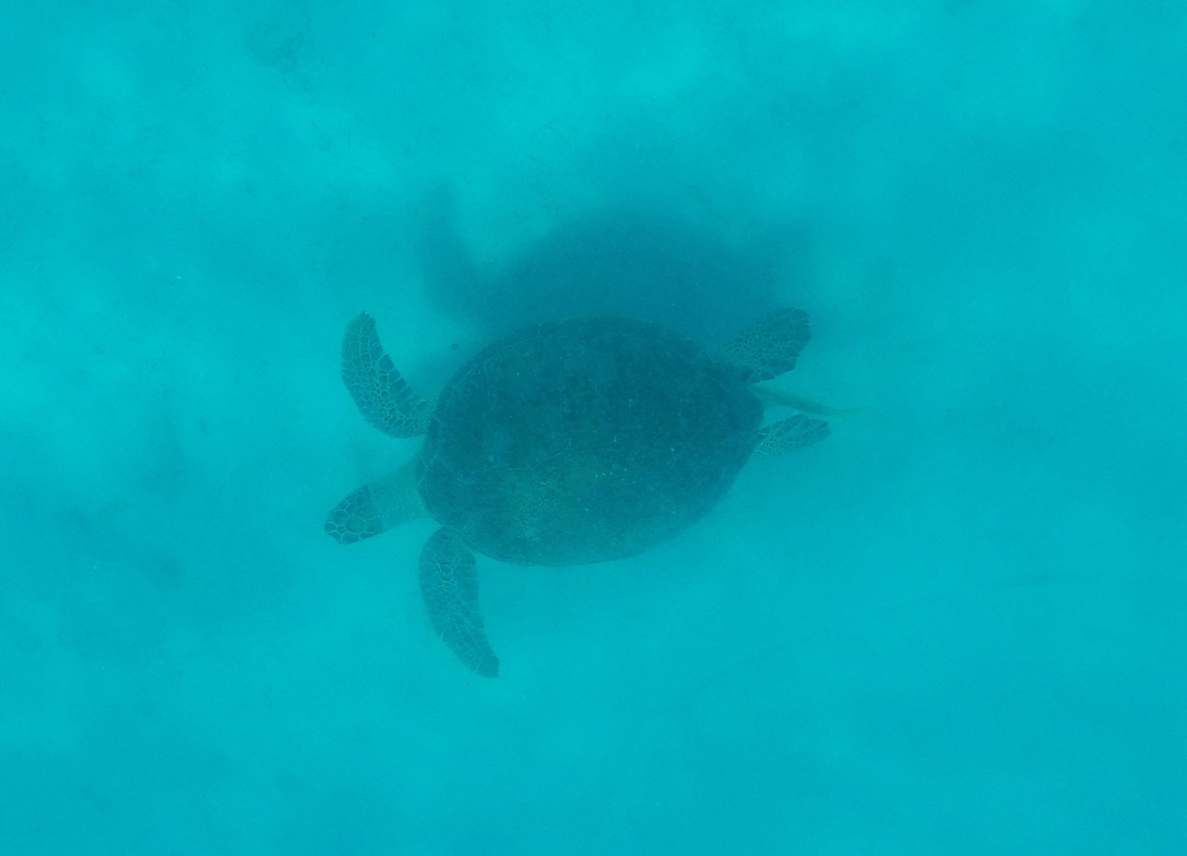 Zwei Schildkröten kamen schon bald, um uns auszukundschaften. Und beim nächsten Schnorchelgang konnten wir auch unseren privaten Begleitfisch begrüssen, einen grossen Barracuda, der sich gemütlich unter dem Boot versteckt. Ab dann verliess ich mich einfach darauf, dass er sich an die übliche Abmachung halten würde, dass grössere Tiere wie Menschen von kleineren wie Barracudas nicht ohne Not angegriffen werden.