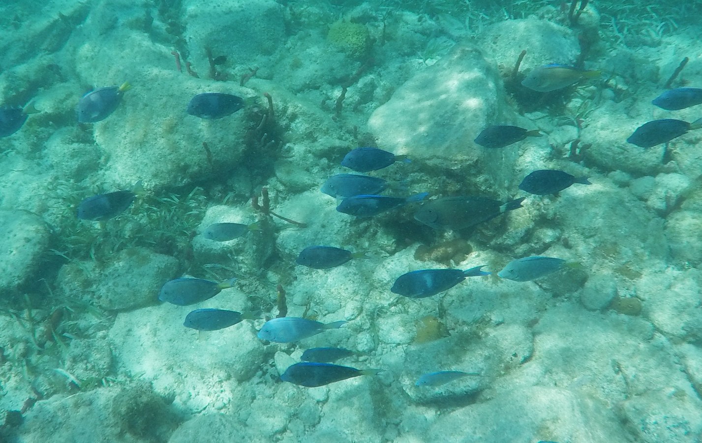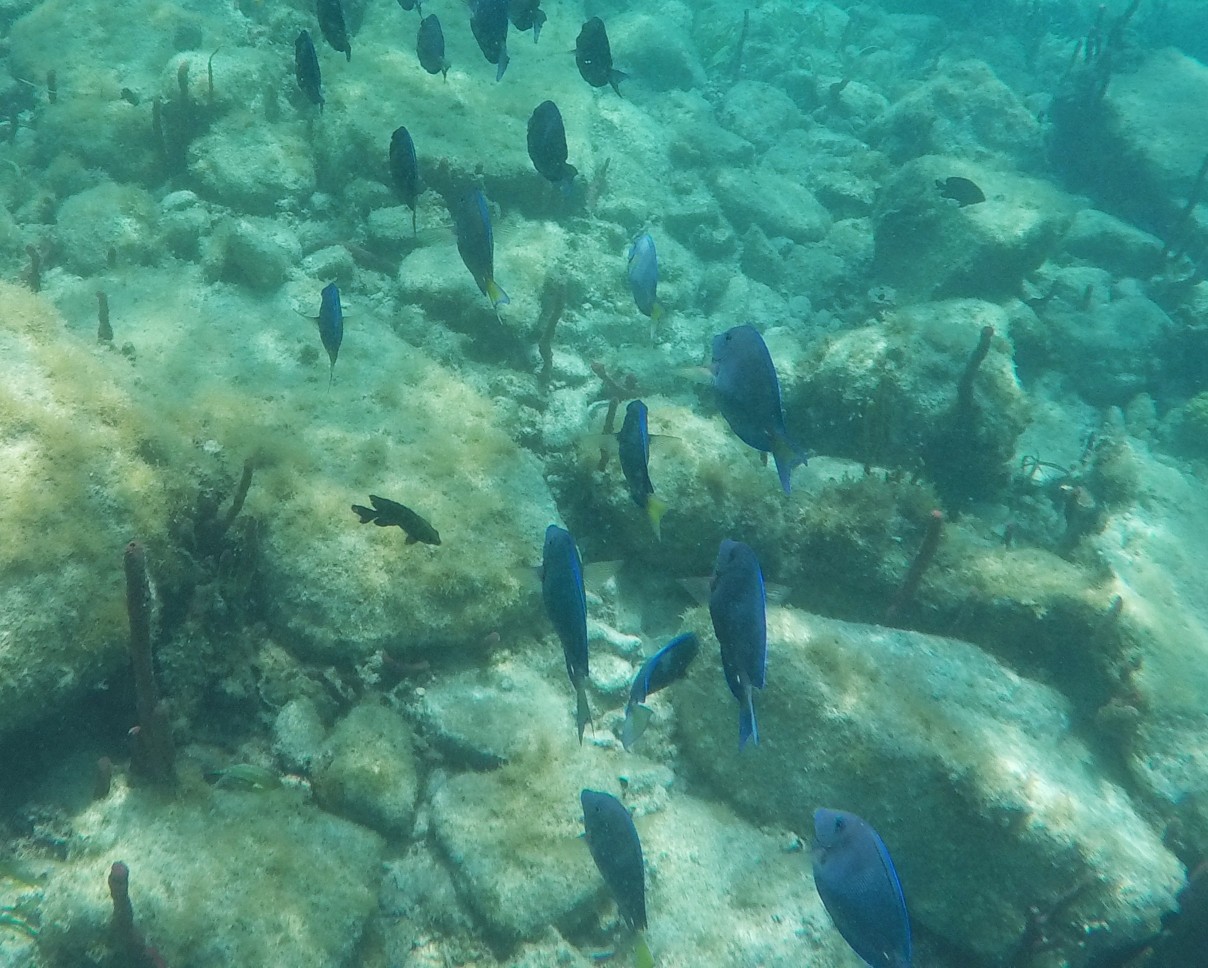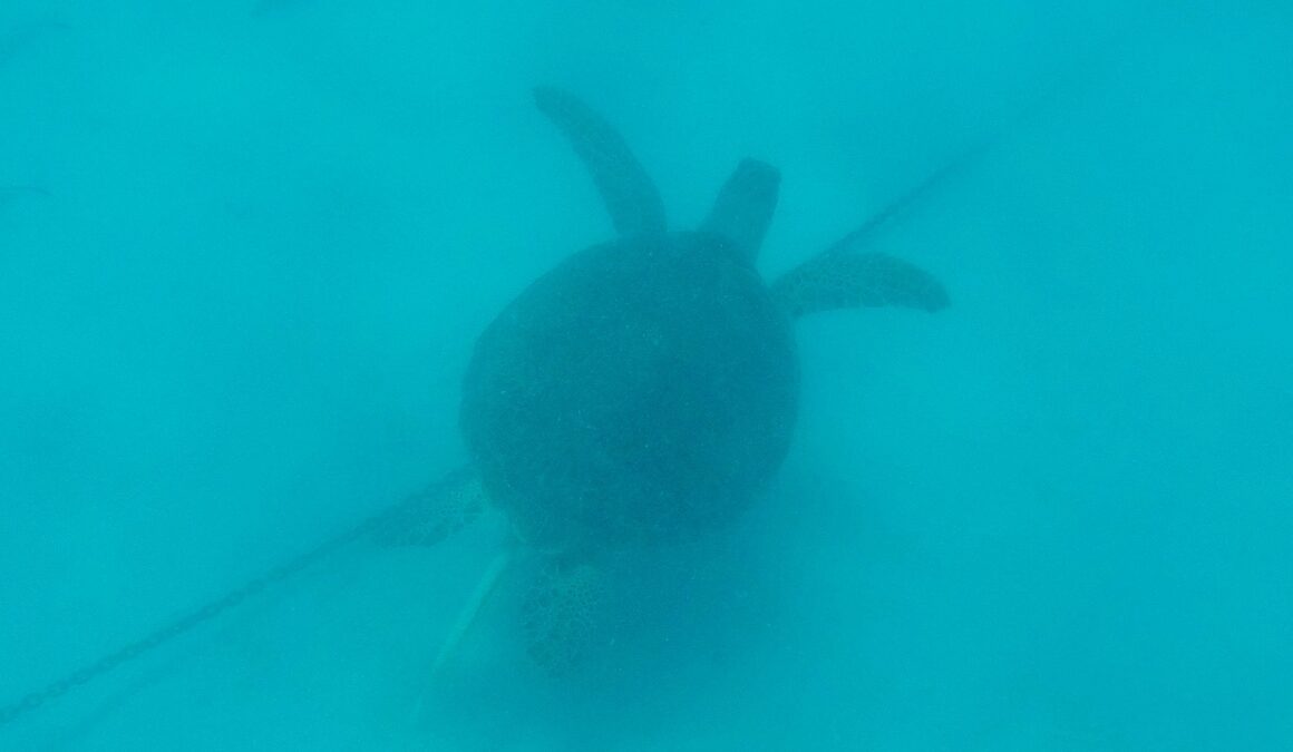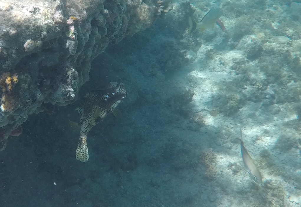 Zwei Schildkröten kamen schon bald, um uns auszukundschaften. Und beim nächsten Schnorchelgang konnten wir auch unseren privaten Begleitfisch begrüssen, einen grossen Barracuda, der sich gemütlich unter dem Boot versteckt. Ab dann verliess ich mich einfach darauf, dass er sich an die übliche Abmachung halten würde, dass grössere Tiere wie Menschen von kleineren wie Barracudas nicht ohne Not angegriffen werden.
