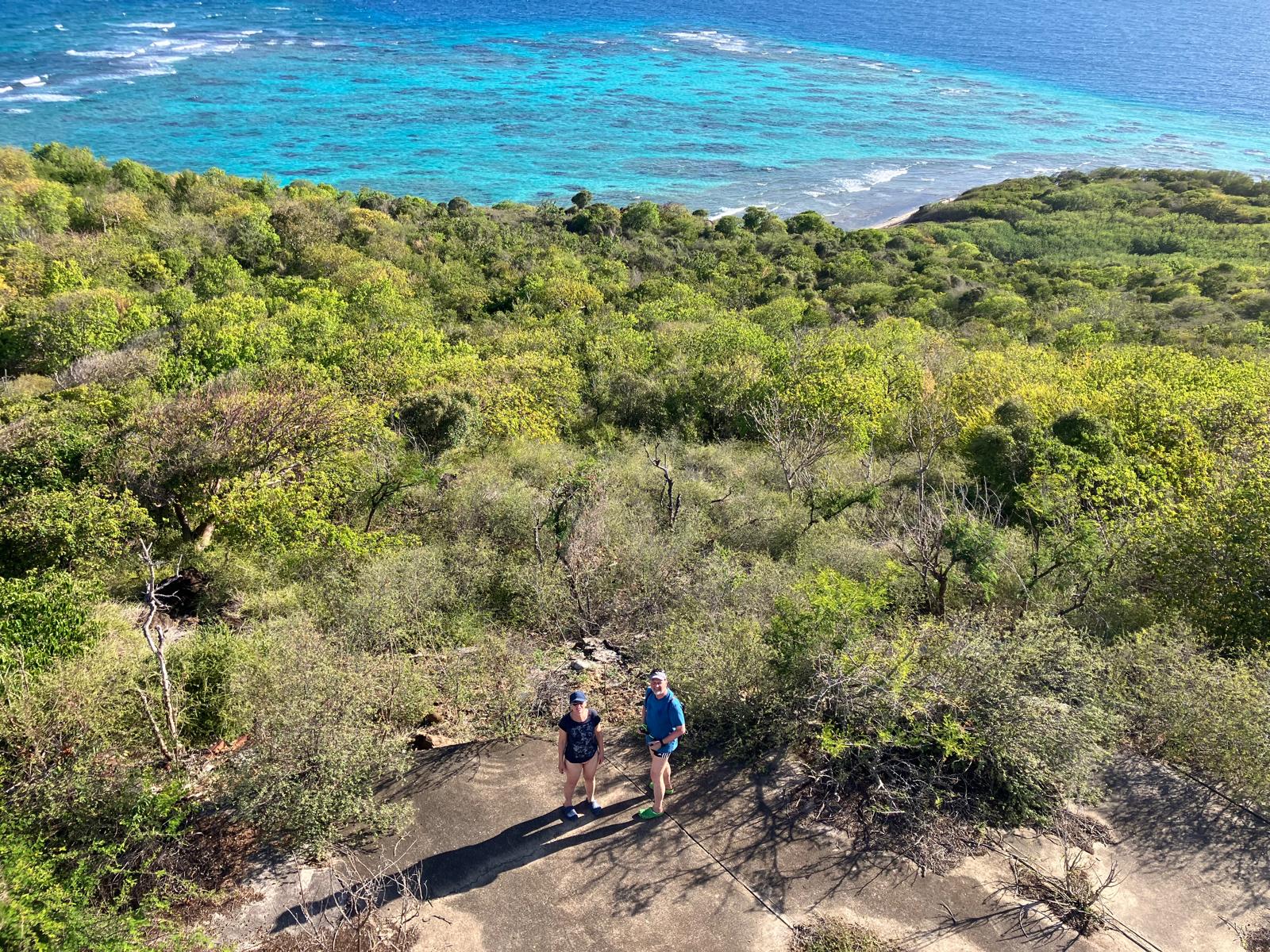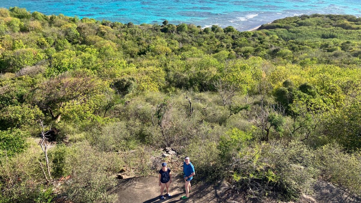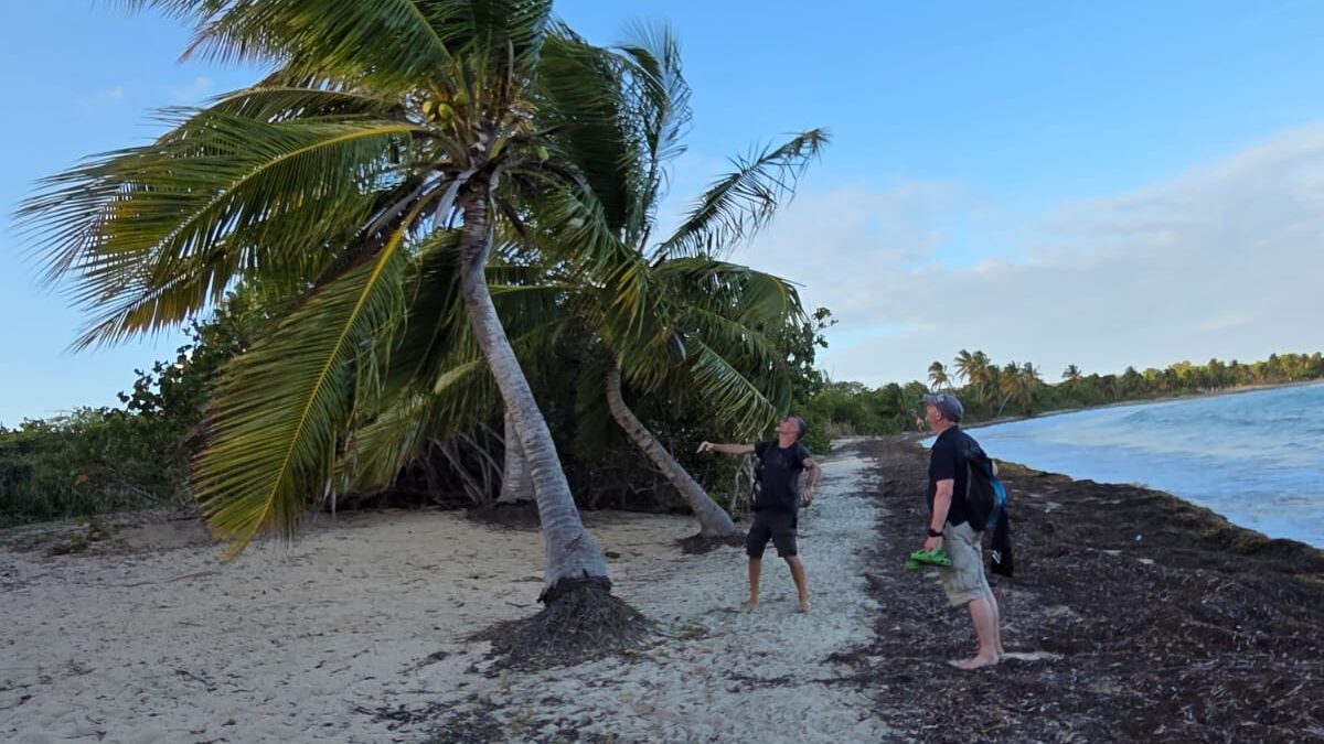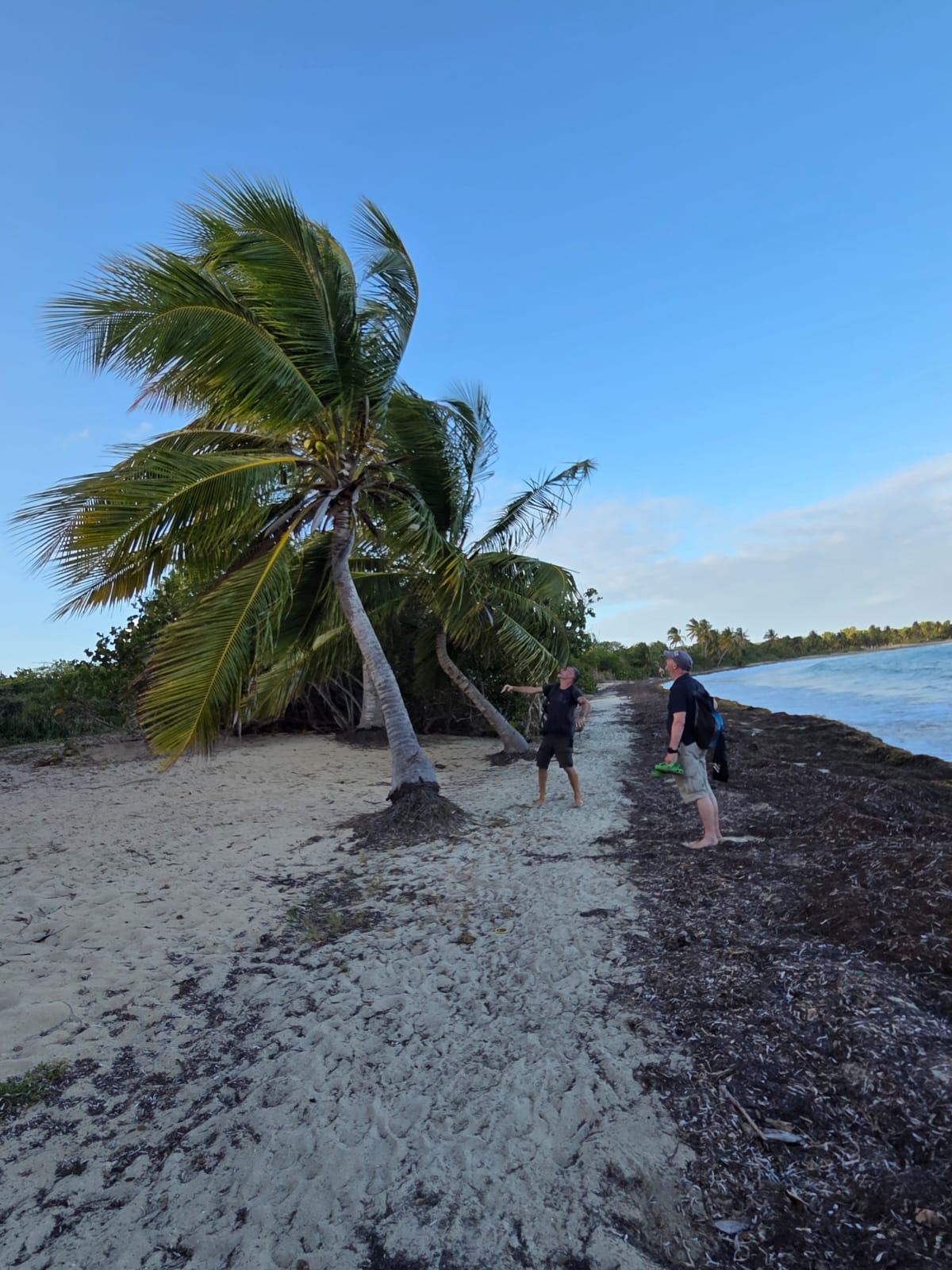 Freitag, 20.3.26 Relativ früh geht’s an den langen Törn im Westen um Vieques herum, dann im Wellenschutz nach Nordosten und hinüber nach Culebrita zur wunderschönen Tortuga Bay. Die beiden Amateur- (bzw. Möchtegern-)Steuermann/-frau kommt wieder zum Einsatz, dieses Mal mit ein wenig mehr Erfahrung und damit etwas besserer Effizienz. Da Vor- und Teile vom Grosssegel gesetzt werden, machen wir doch ordentlich Fahrt. Nach dem Ankern in der Tortuga Bay machen wir uns schnell (mehr oder weniger, nach Schmid Maeder Familien-Zeitbegriff …) auf zu einer kurzen Wanderung zum alten und neuen Leuchtturm. Viel Schwell und Brandung führen leider fast zum Kentern des Dinghi bei der Wegfahrt, was ein wenig schlechtere Stimmung unsererseits auslöst. Bänz beruhigt diesbezüglich beim Abend-Höck ein bisschen mit seiner Erläuterung, dass das Wegfahren vom Strand mit einem Dinghi immer schwierig sei.