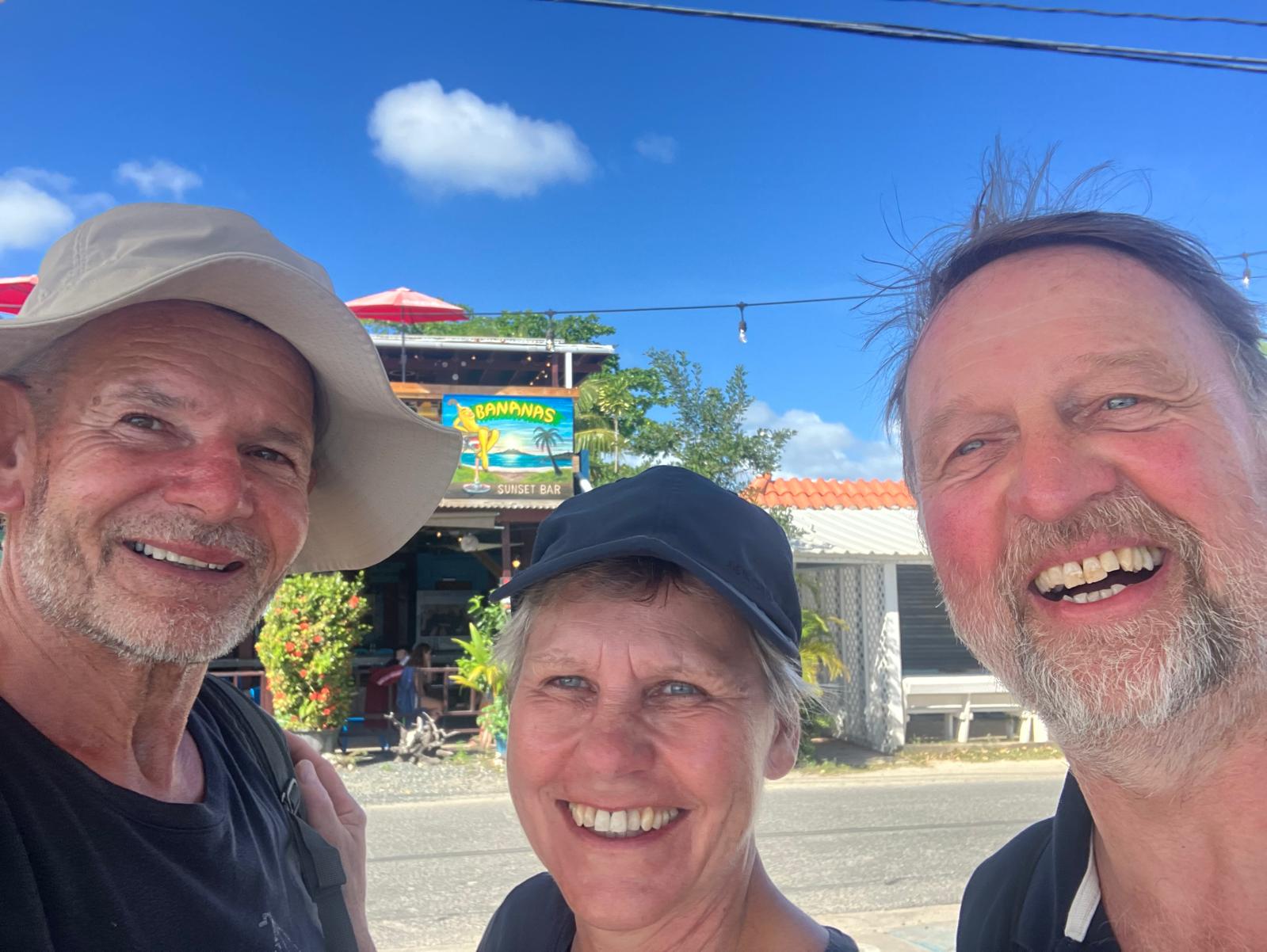 Am Montag, 16.3. ist es dann soweit: Nach einigen Wirrungen und Irrungen unseres eher betagten Taxichauffeurs finden wir die Roosevelt Road Marina (schlussendlich unter Polizeibegleitung nota bene😊). Mit grosser Freude sehen wir die sea magiX vor Anker liegen und die Schweizer Fahne, die uns zu winkt. Auch der Täxeler hat seine Freude, dass er Bänz mit lautem Hupen auf unsere Ankunft aufmerksam machen darf.😉 Bänz holt uns mit dem Dinghi ab und die erste Herausforderung für uns Landratten beginnt – wie kommen wir bloss in das Ding. Bänz erklärt uns das in aller Ruhe und wir laden unser (viel zu grosses) Gepäck ins Beiboot. Mit etwas mulmigem Gefühl schaffen auch wir es und Bänz fährt uns in zwei Ladungen zu seinem schwimmenden Haus raus. Aber wie kommen wir da hoch? Hmmmm – aber dank der geduldigen Anleitung schaffen wir auch das – mehr oder weniger elegant …